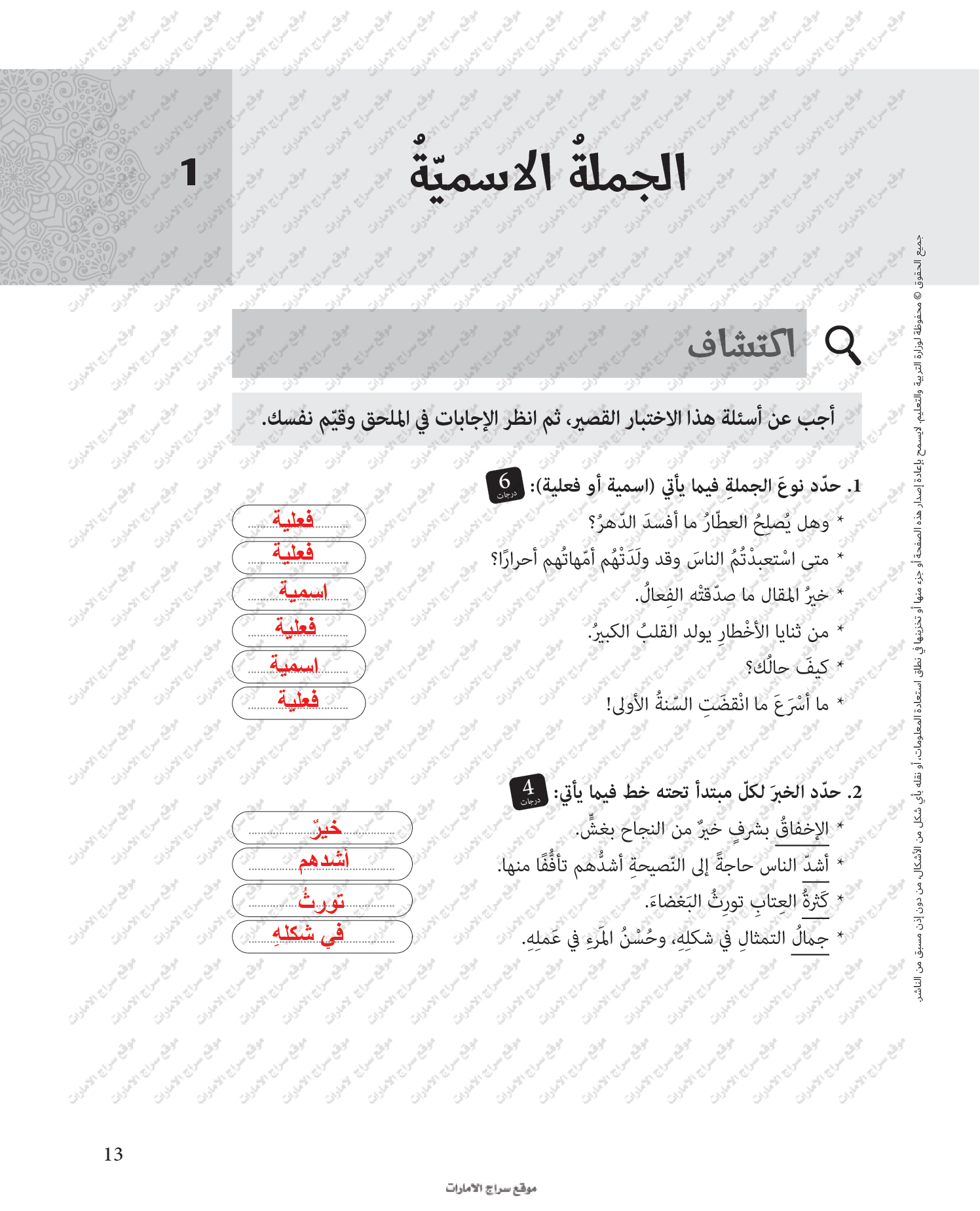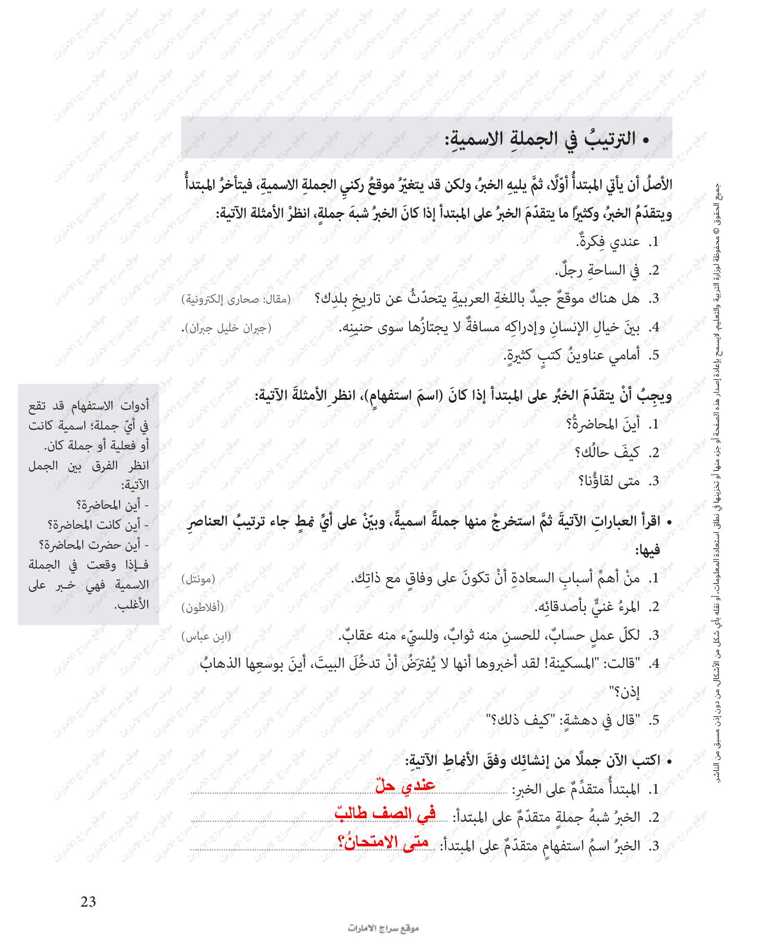 1. الجملةُ الاسميّةُ ومكملاتُها
