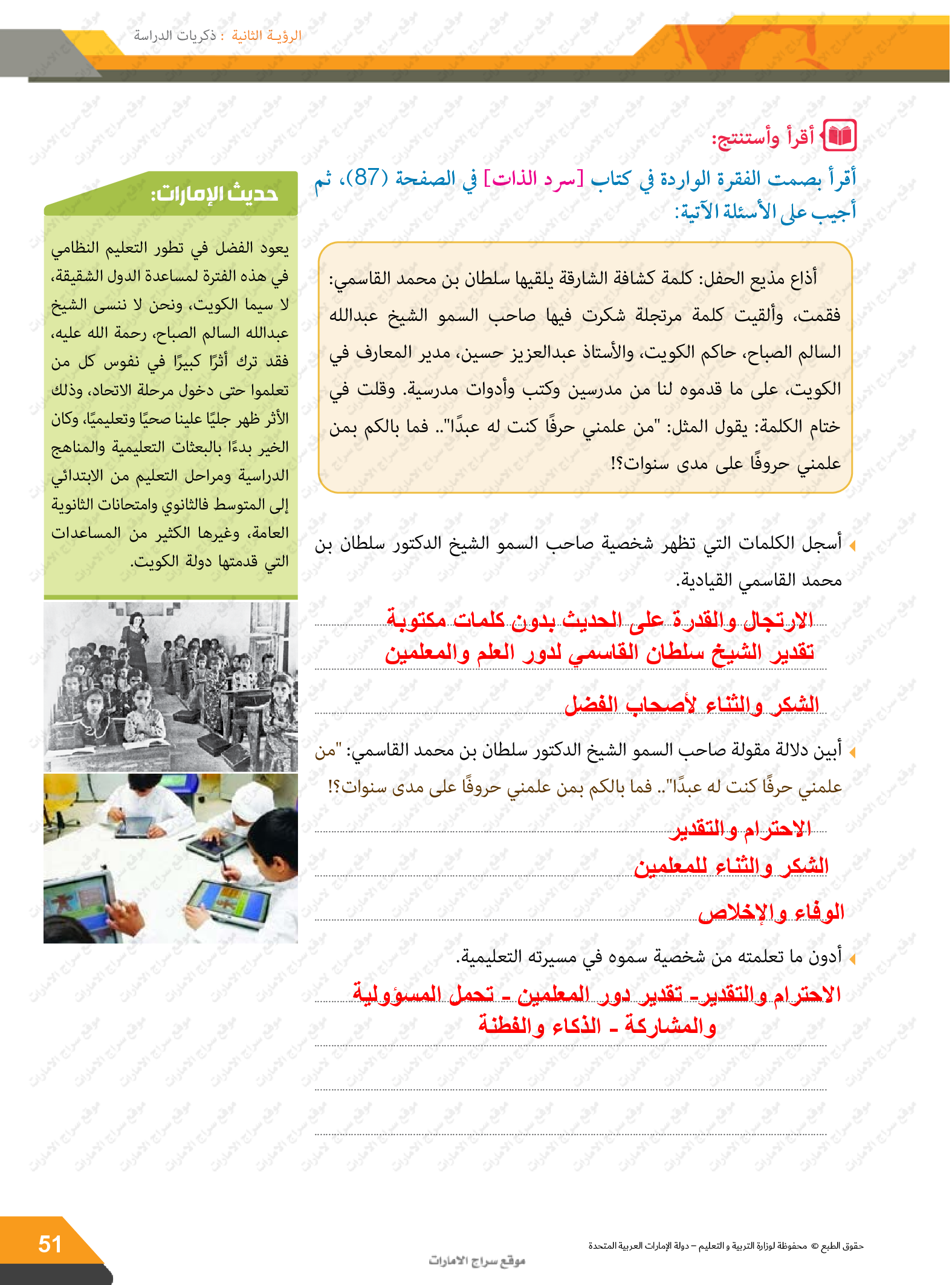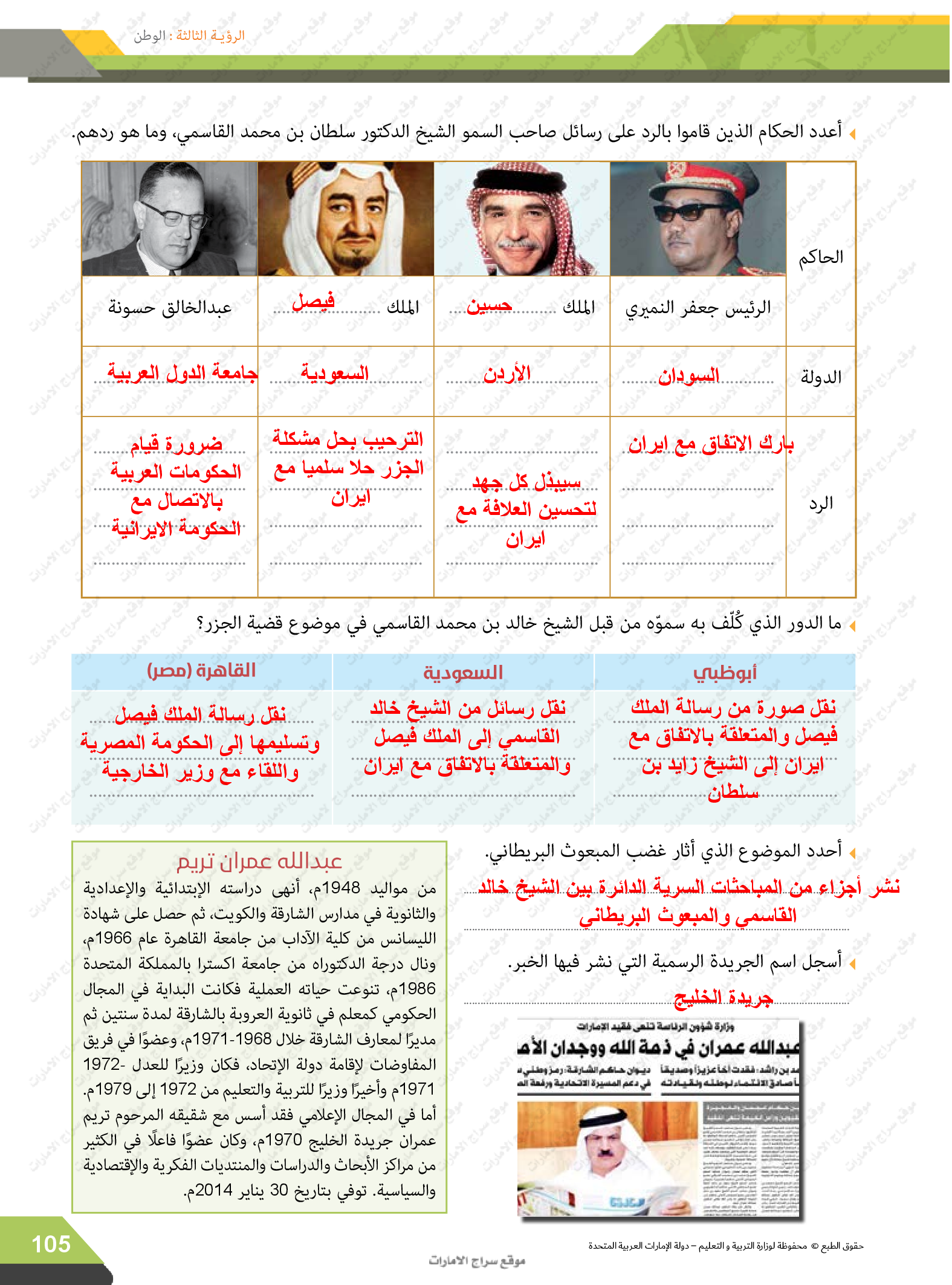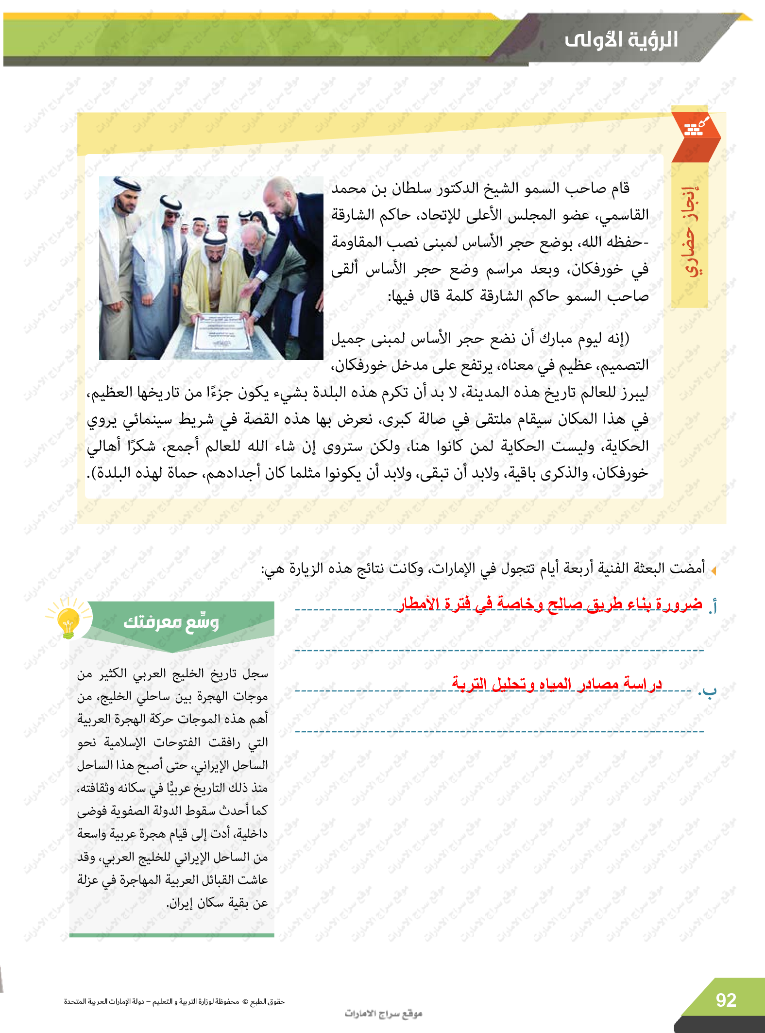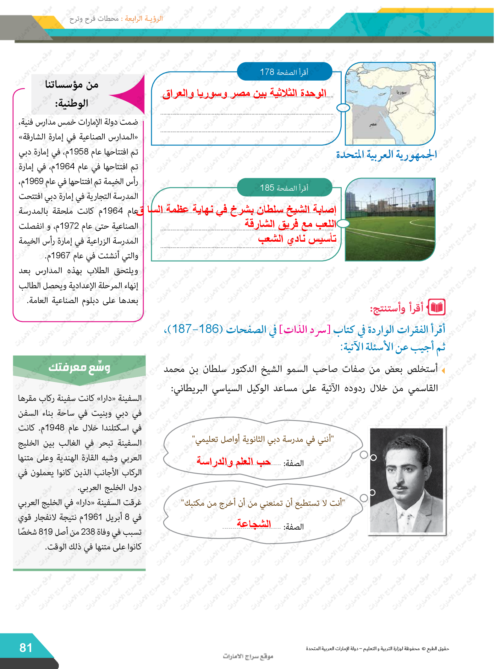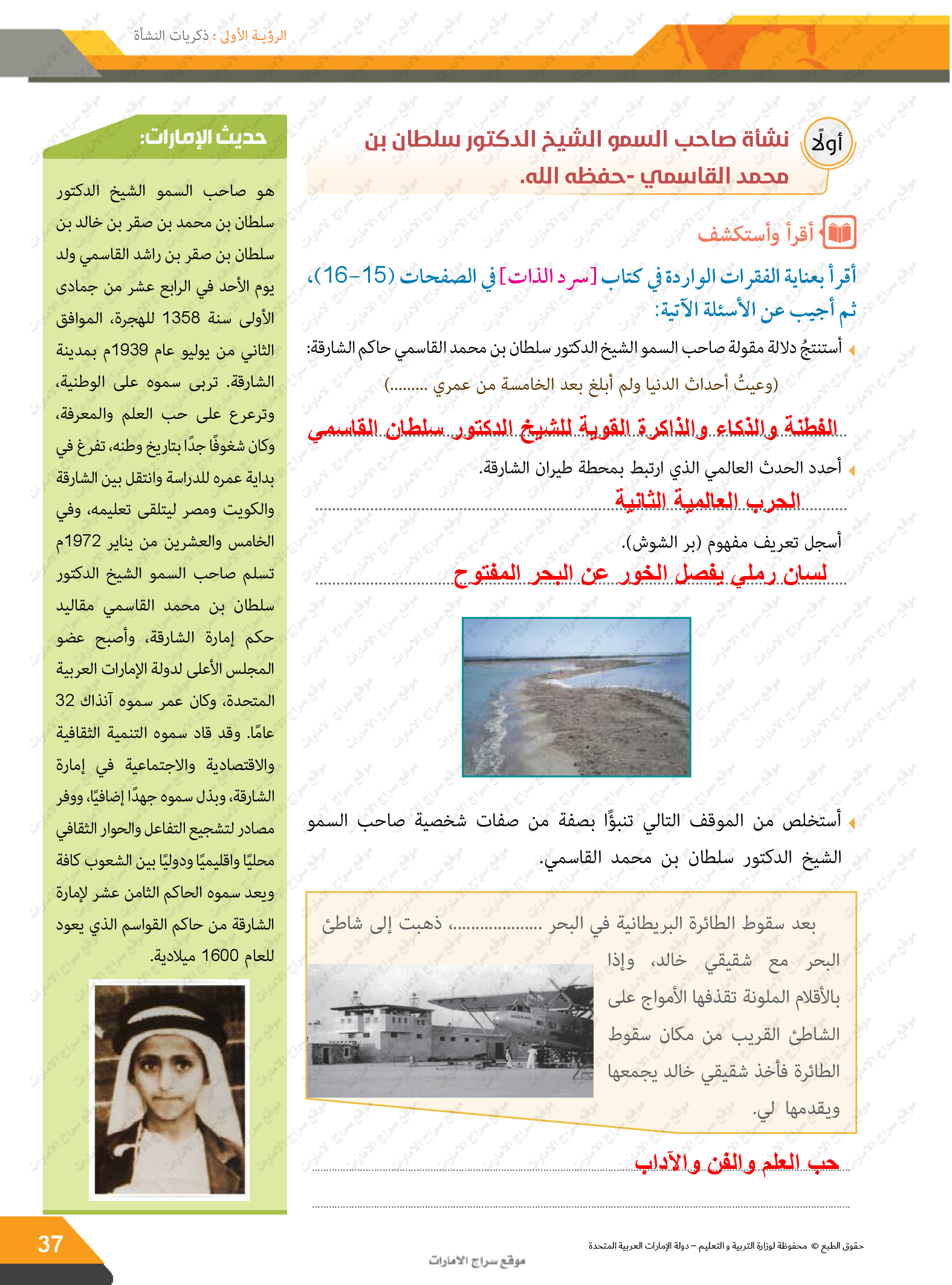 الوحدة الثانية أحداث تاريخية عاصرها صاحب السمو الشيخ الدكتور سلطان بن محمد القاسمي