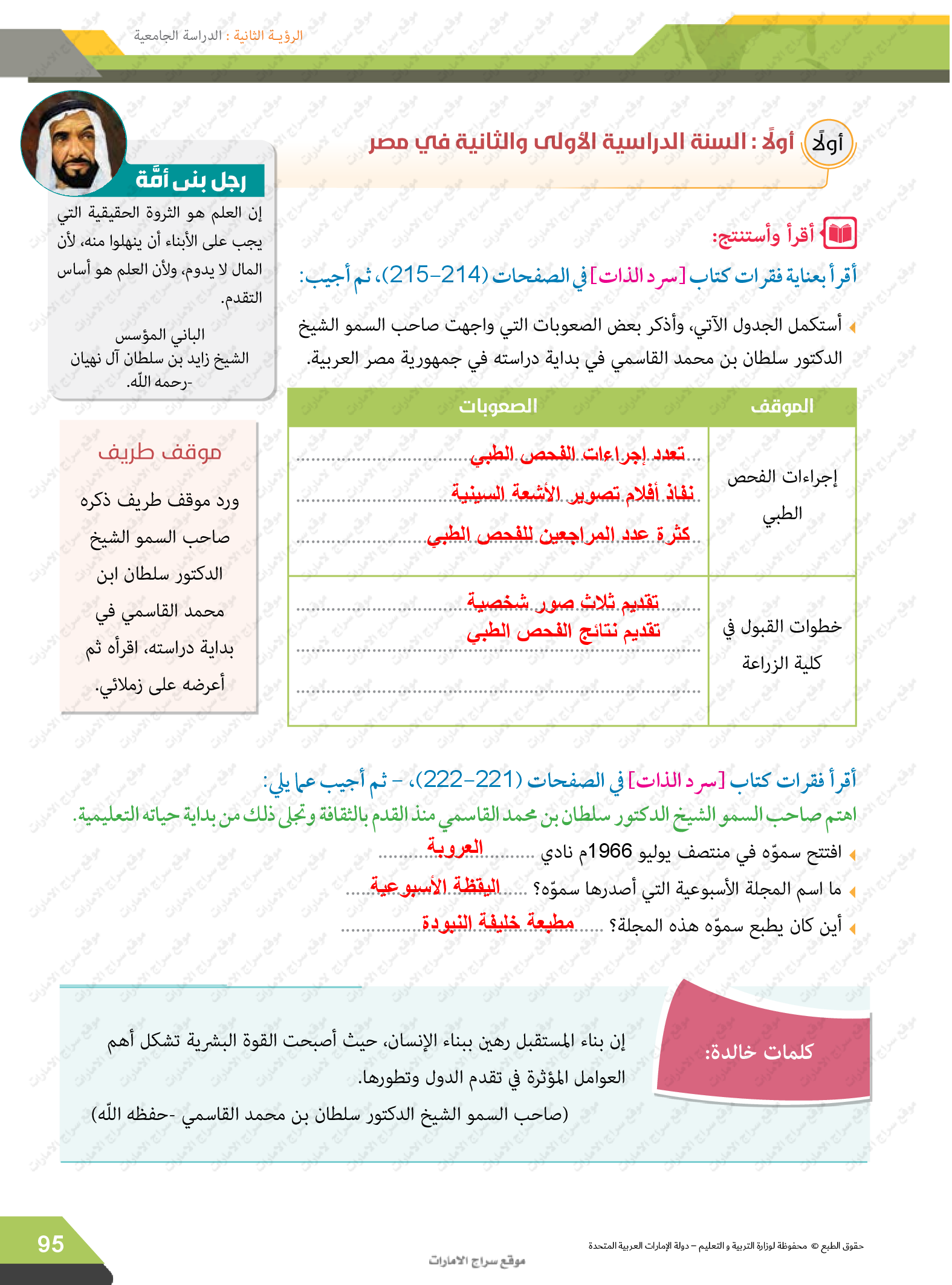 الوحدة الثالثة محطات من حياة سموّه الجامعية والوطنية