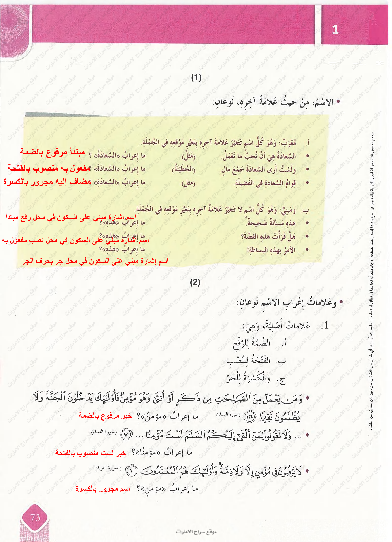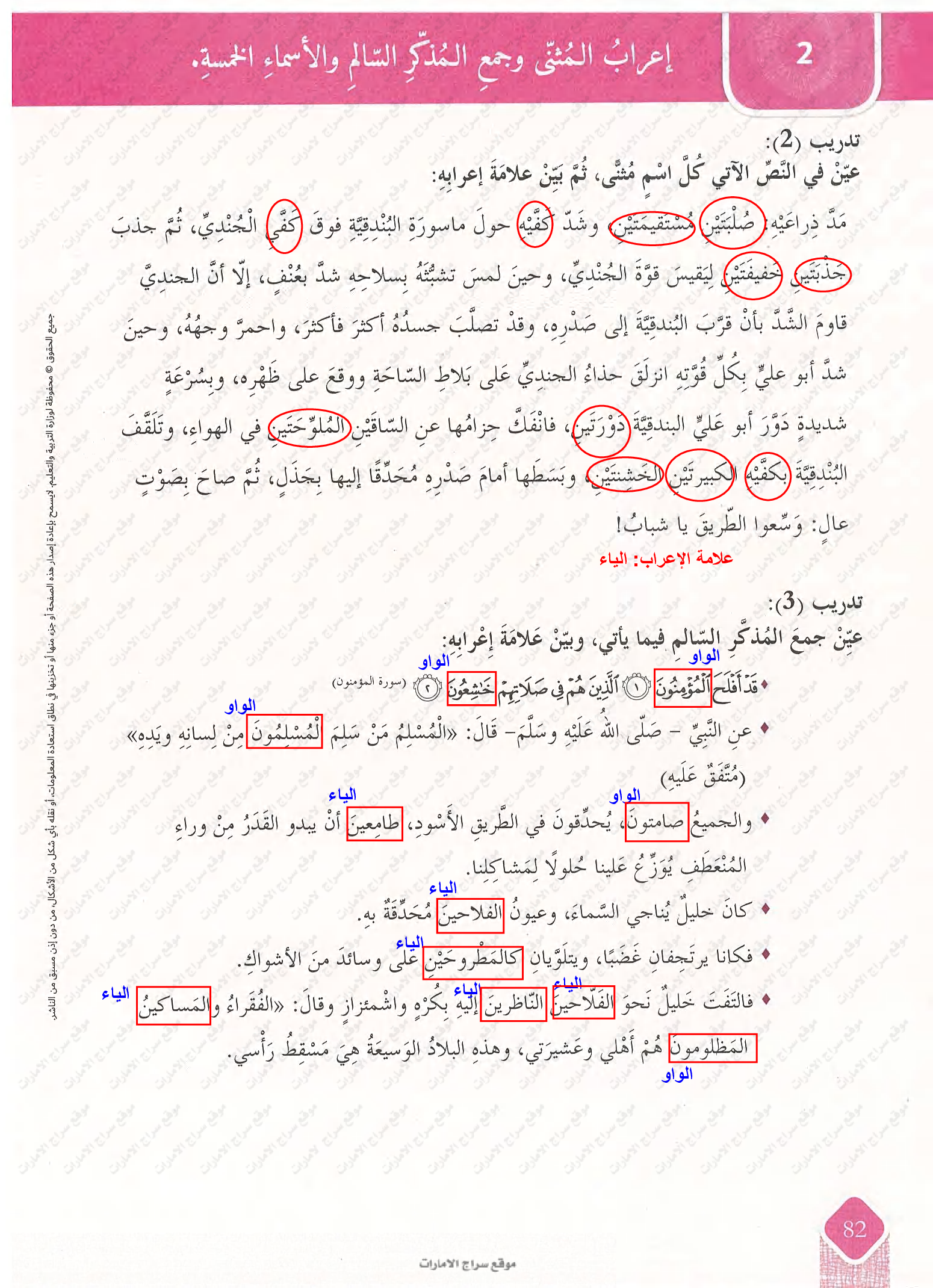 إعراب الاسم المثنى وجمع المذكر السالم والأسماء الخمسة