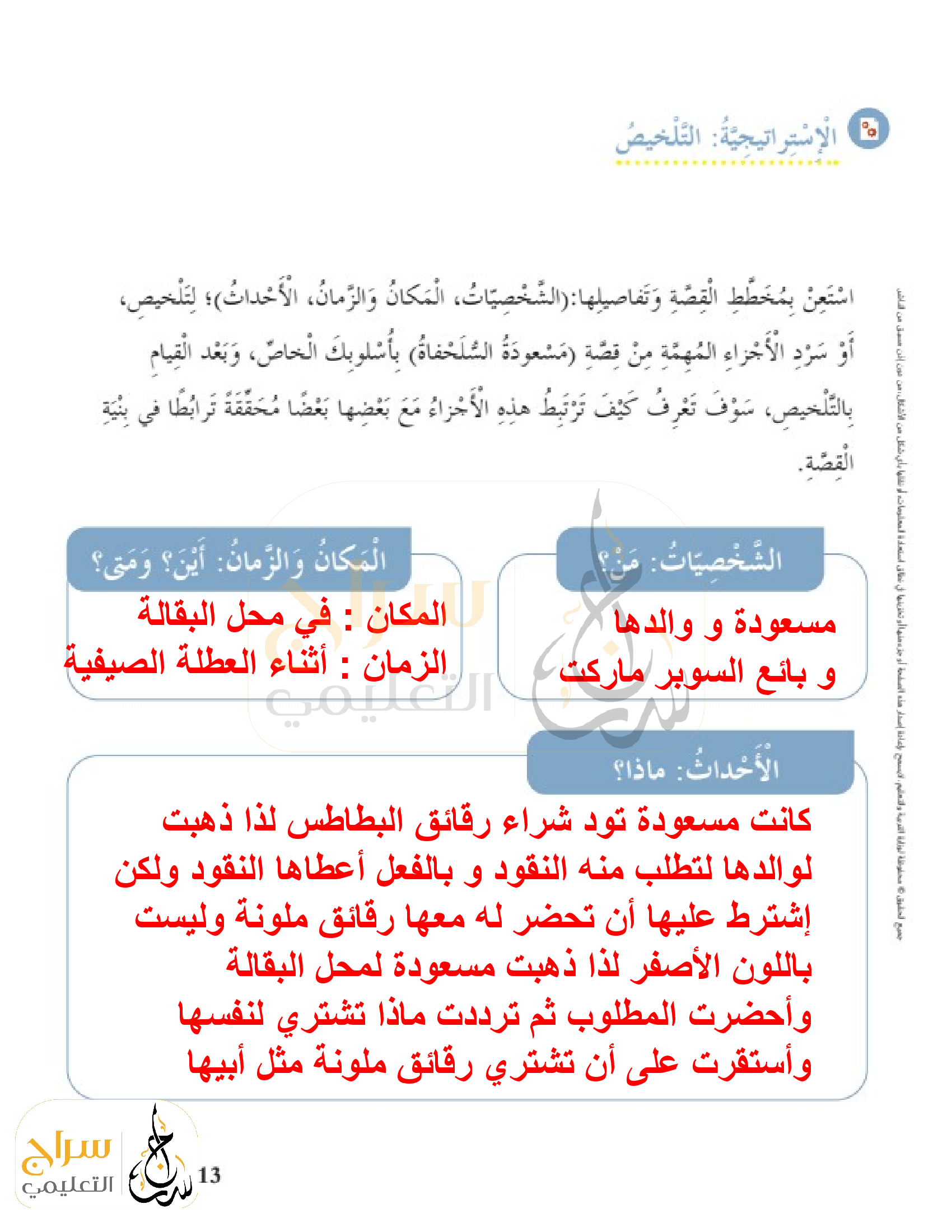الاستراتيجية التلخيص