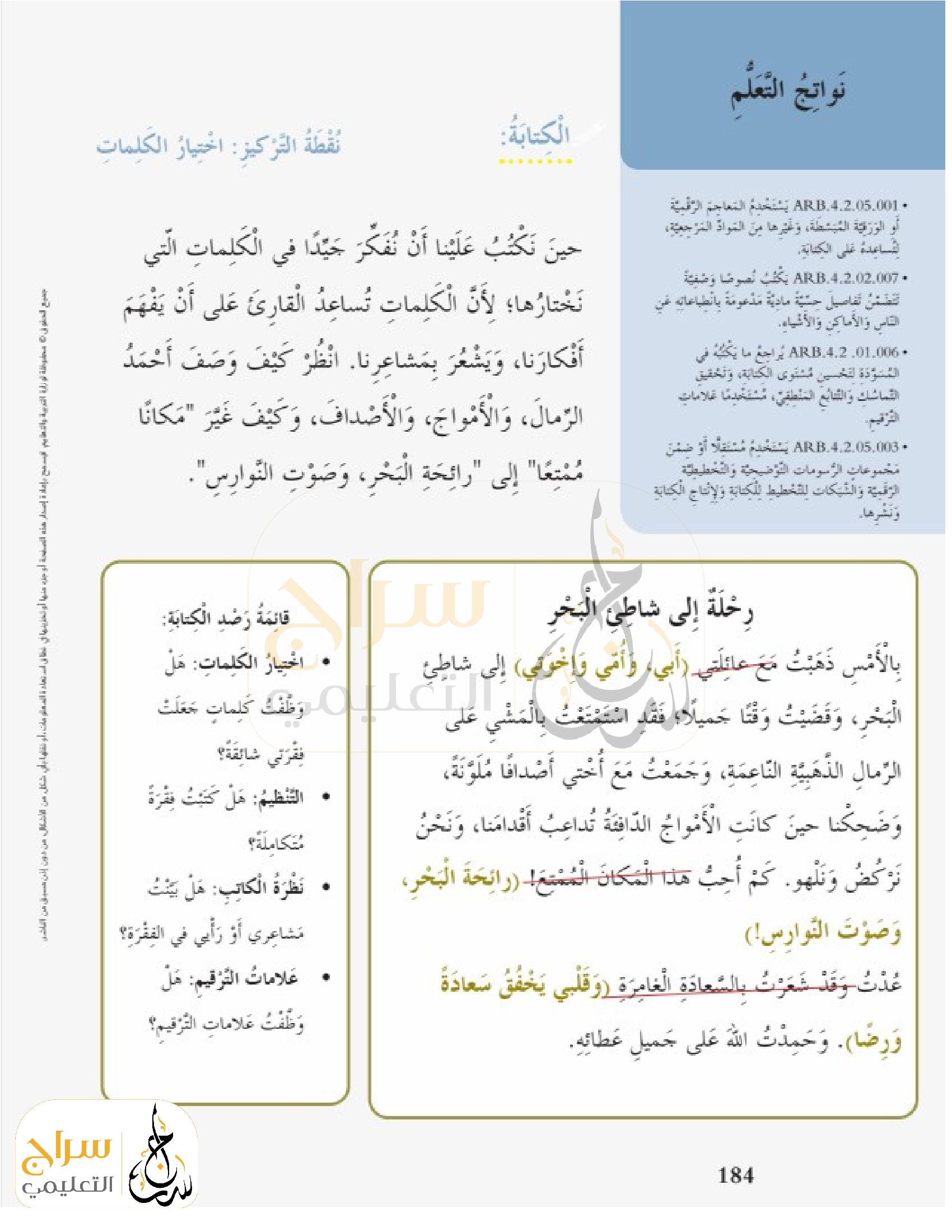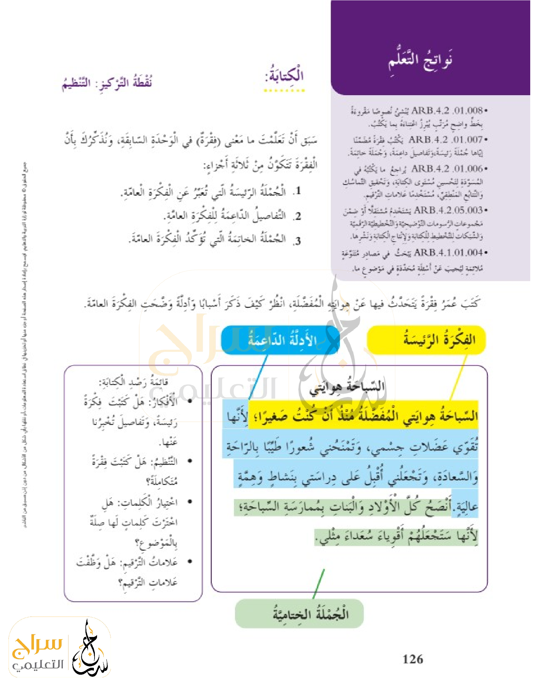 الكتابة (نقطة التركيز التنظيم )