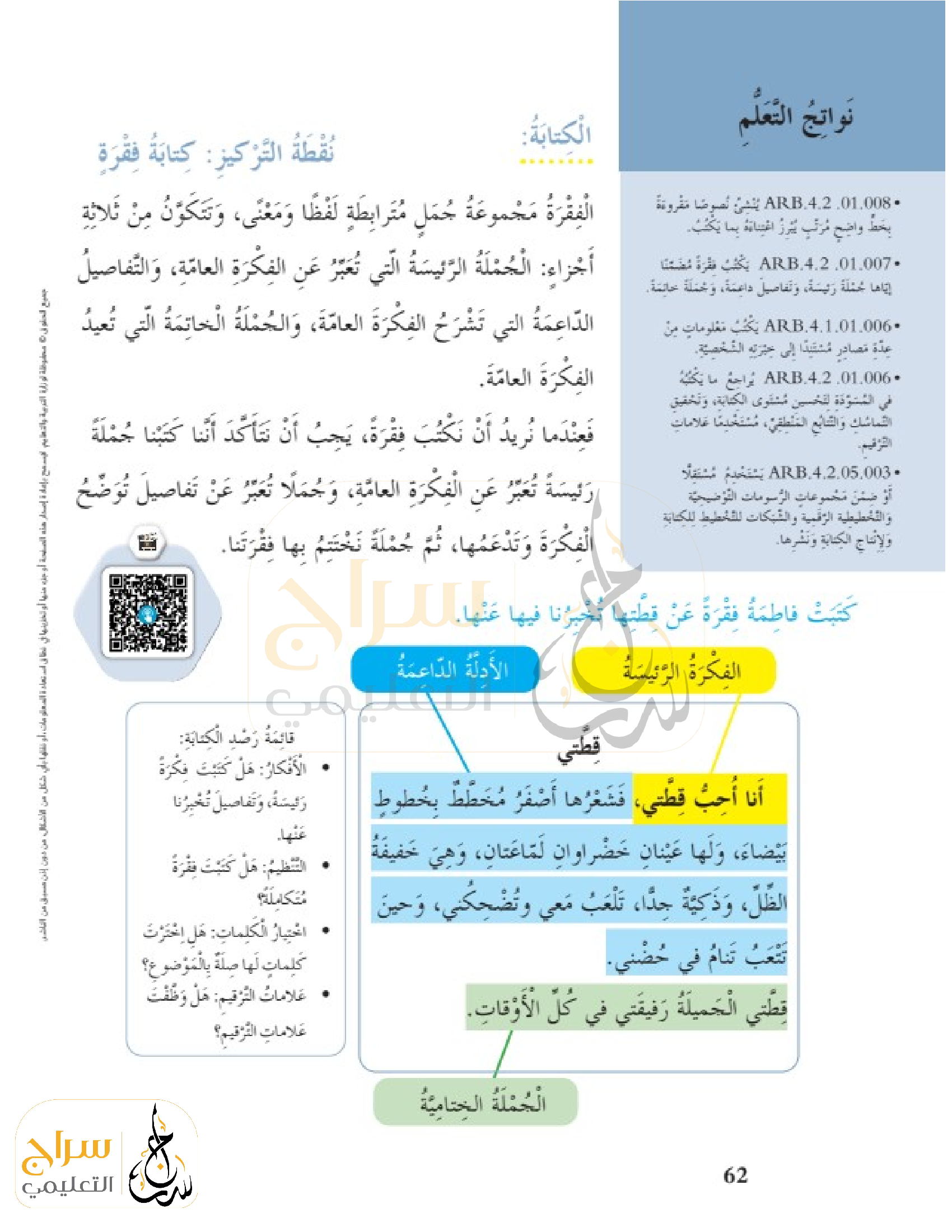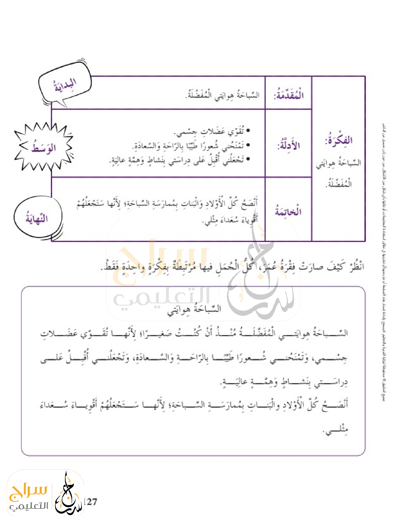الكتابة نقطة التركيز كتابة فقرة