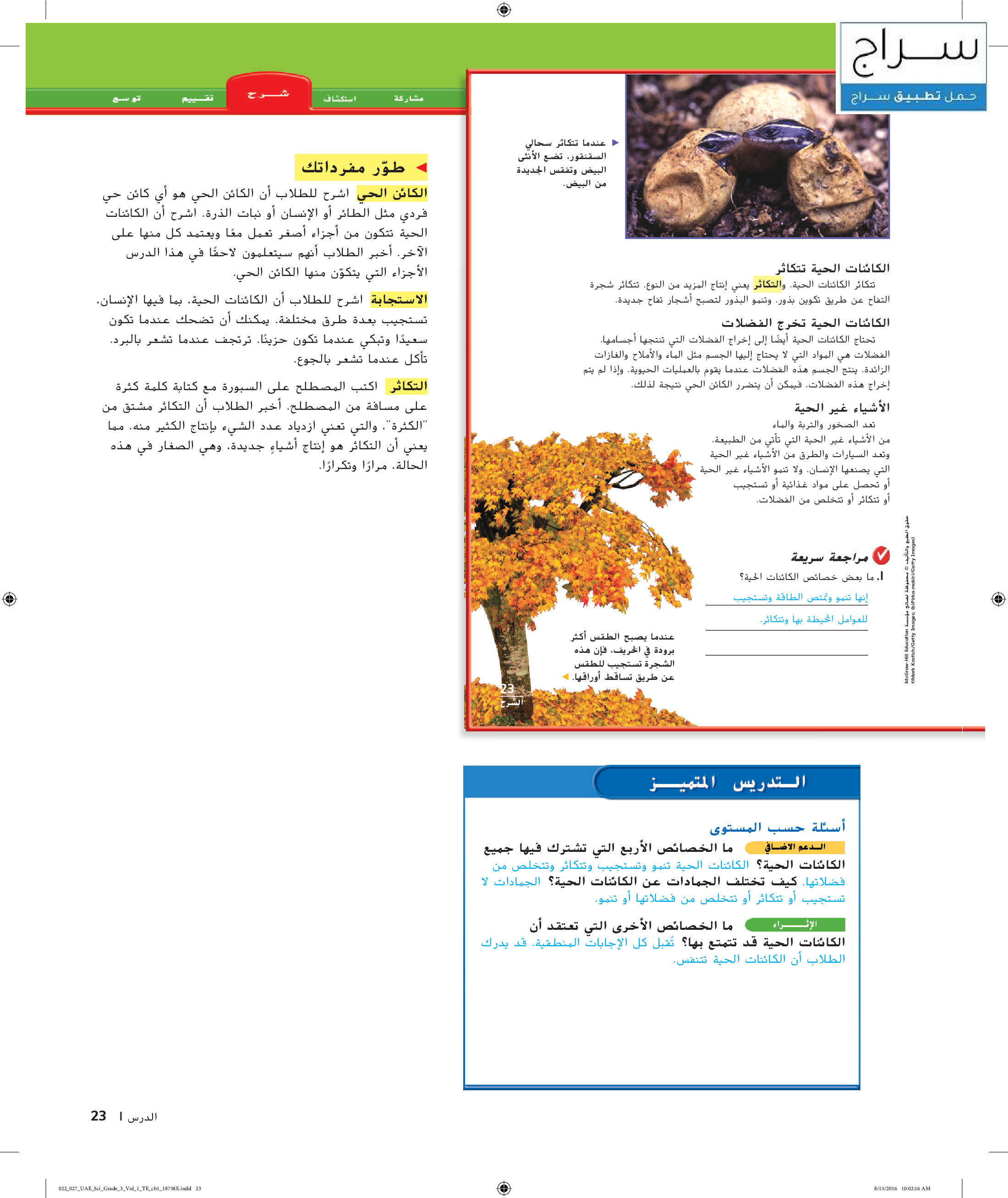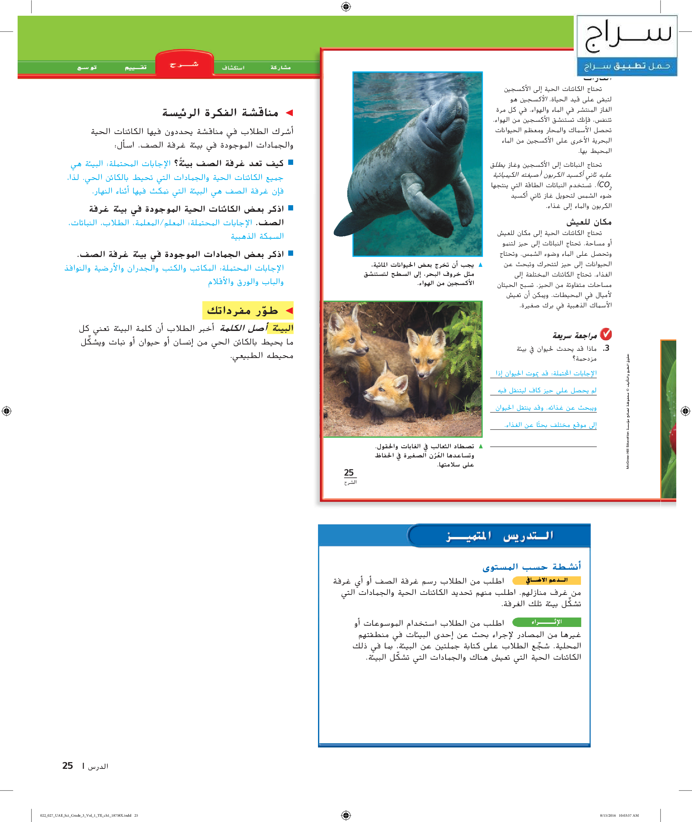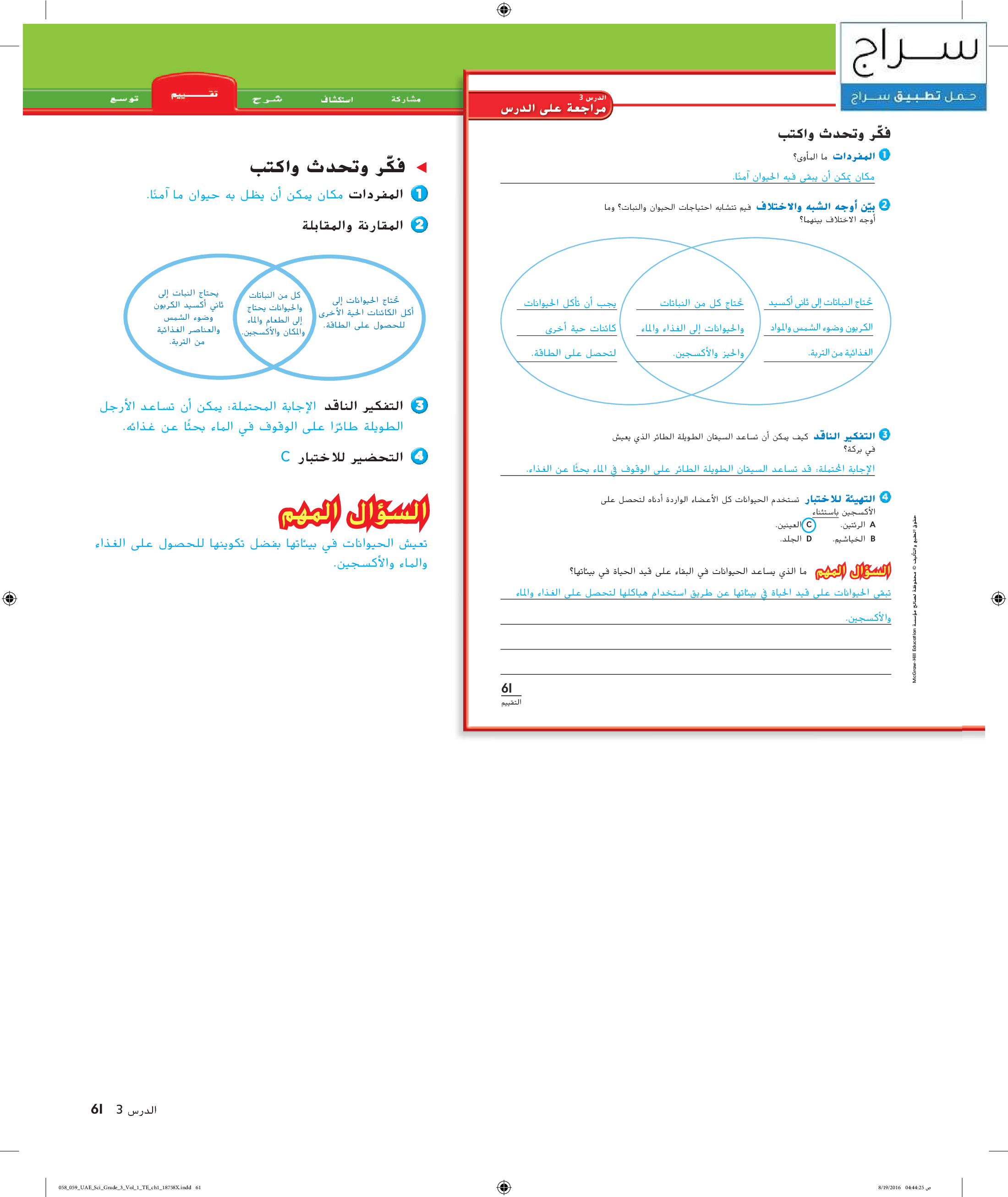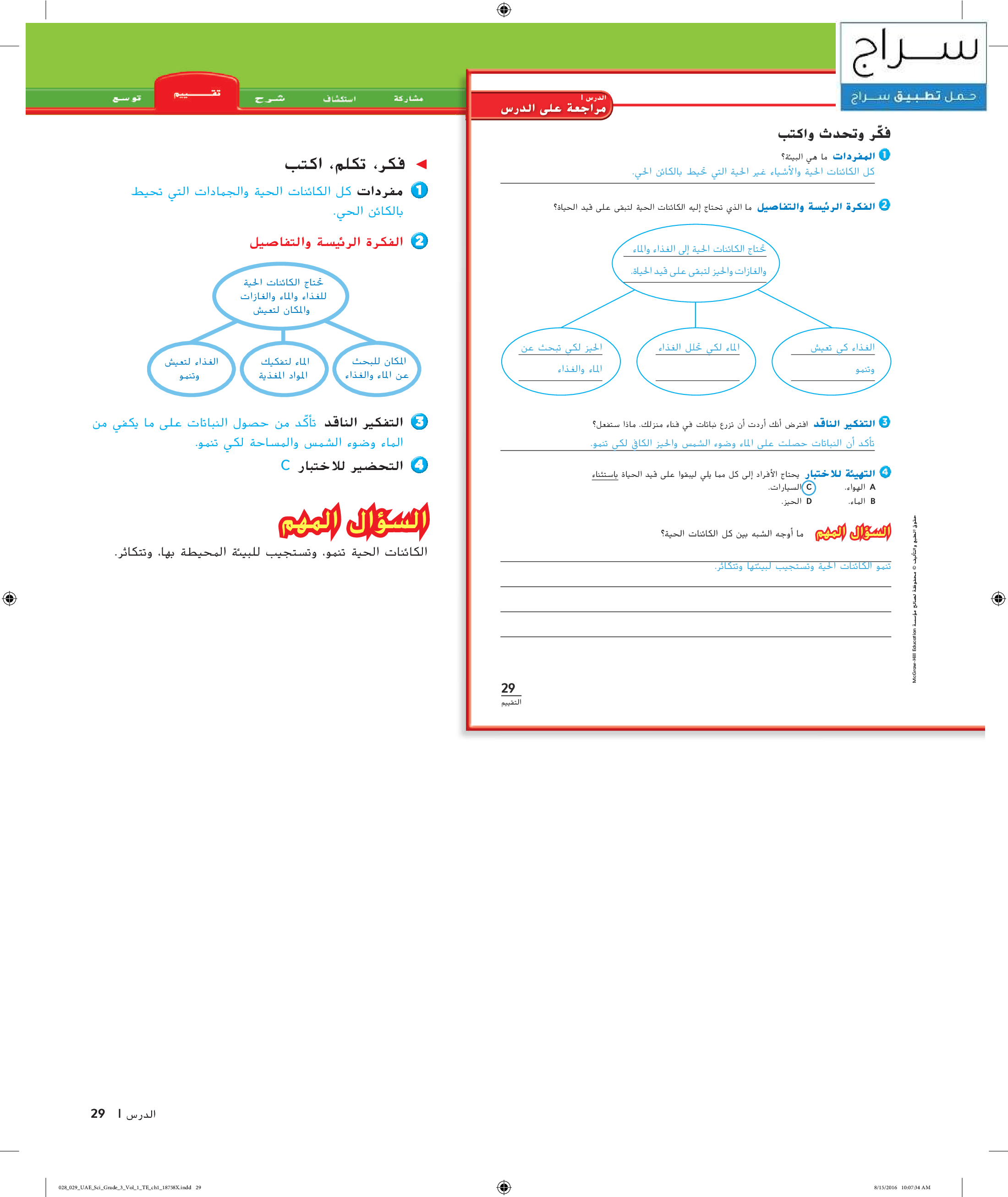 الكائنات الحية واحتياجاتها