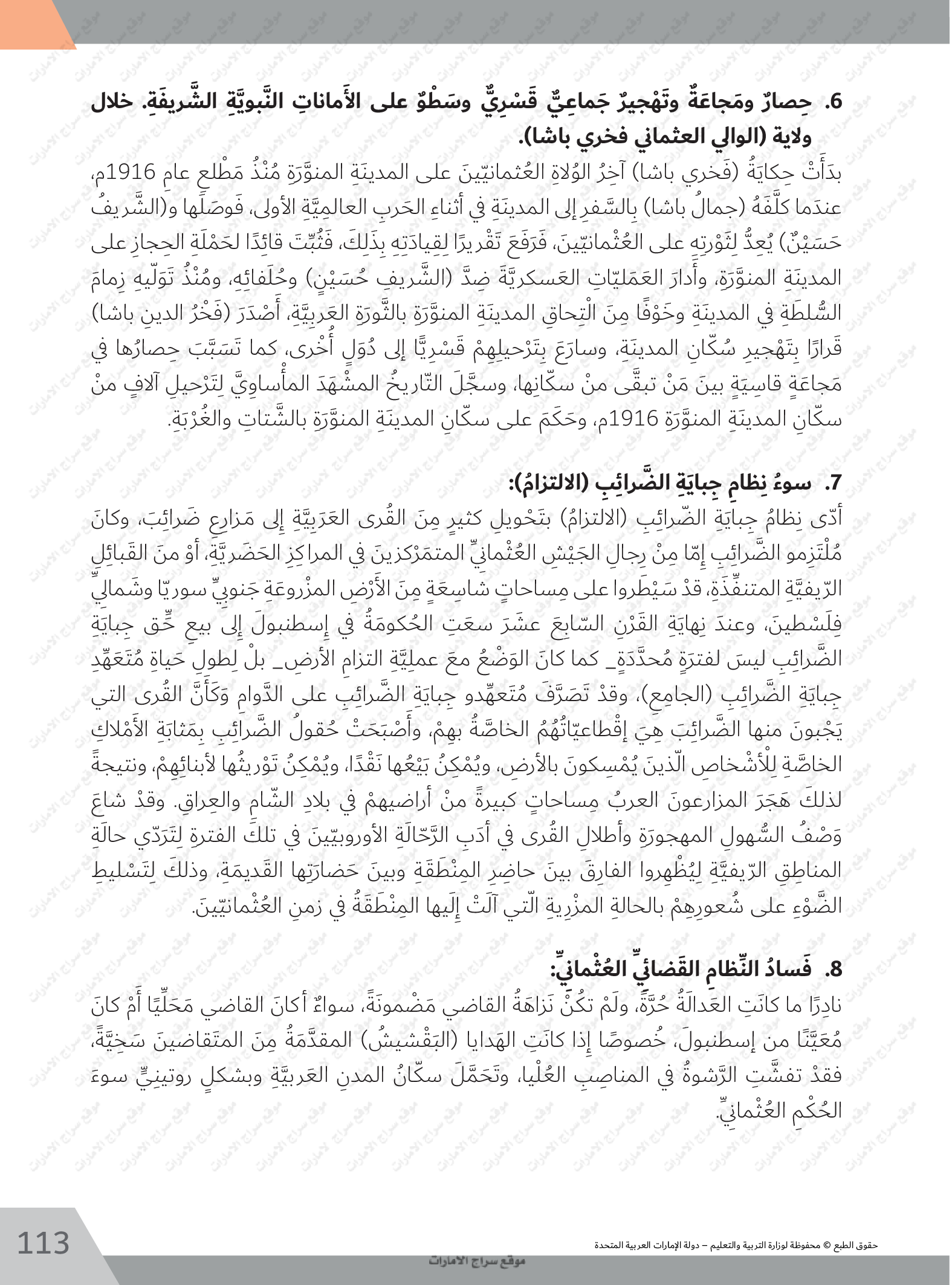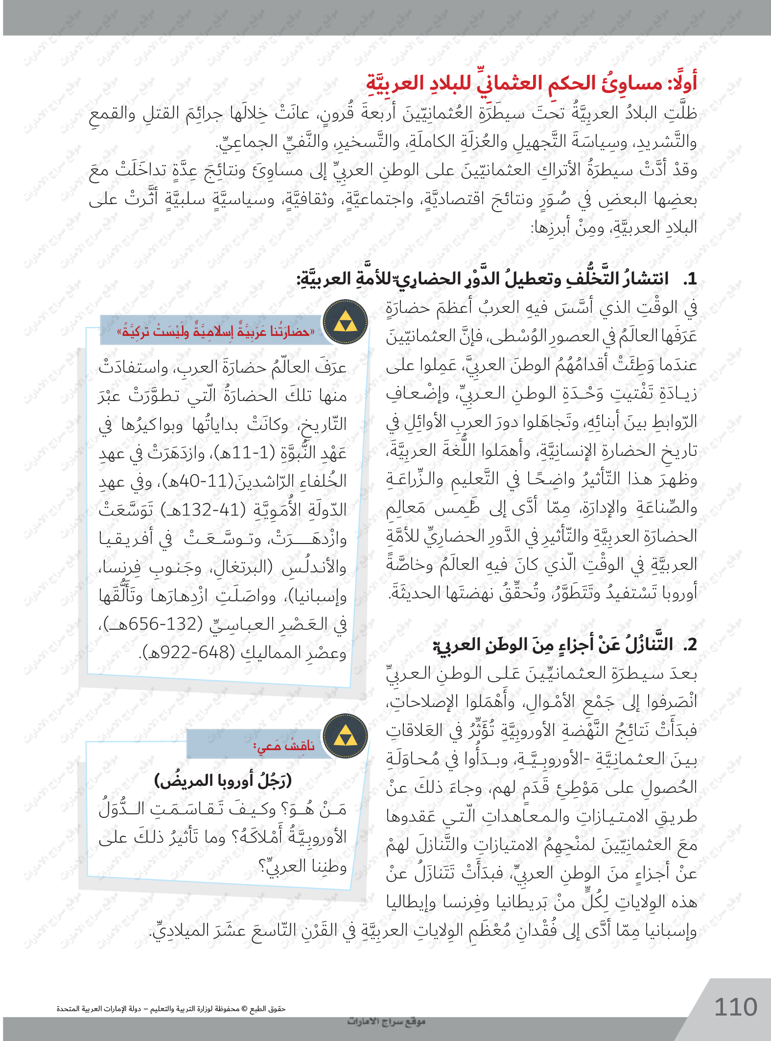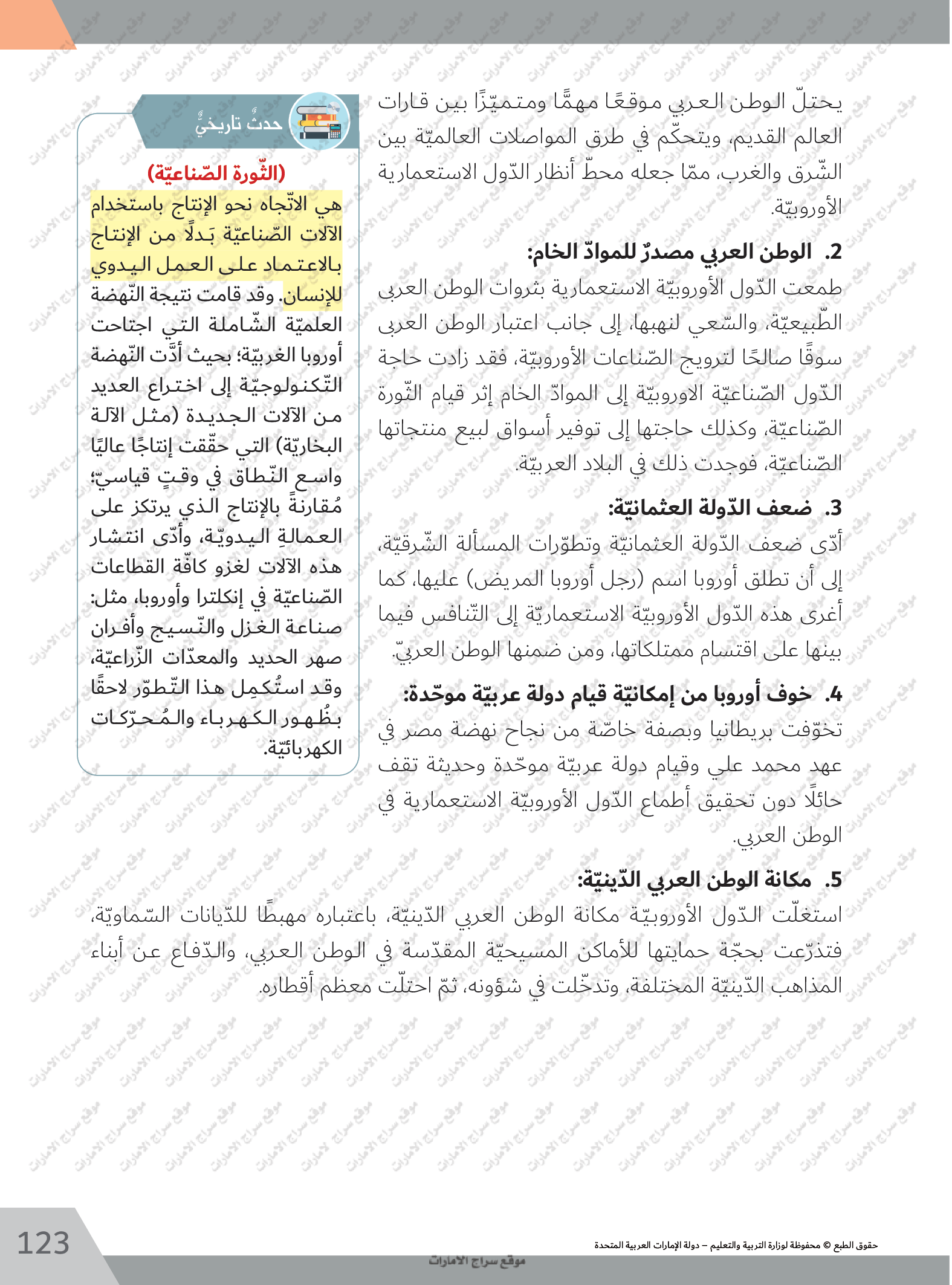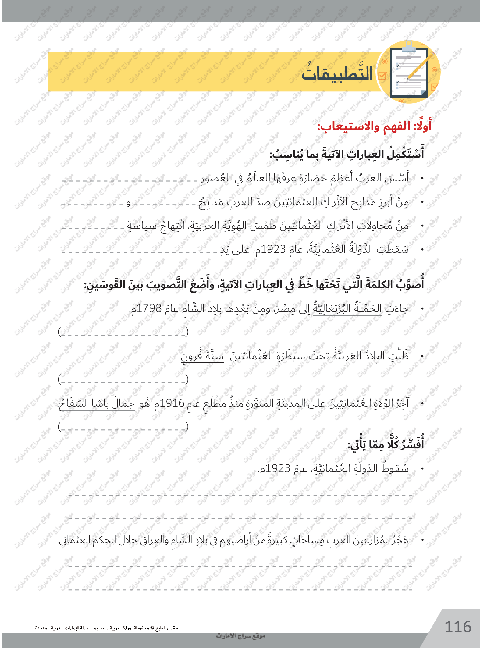 الوَحْدَةُ الثّالثةُِ (تاريخُ الوطنِِ العربيِّ الحديثُ والمعاصرُ)
