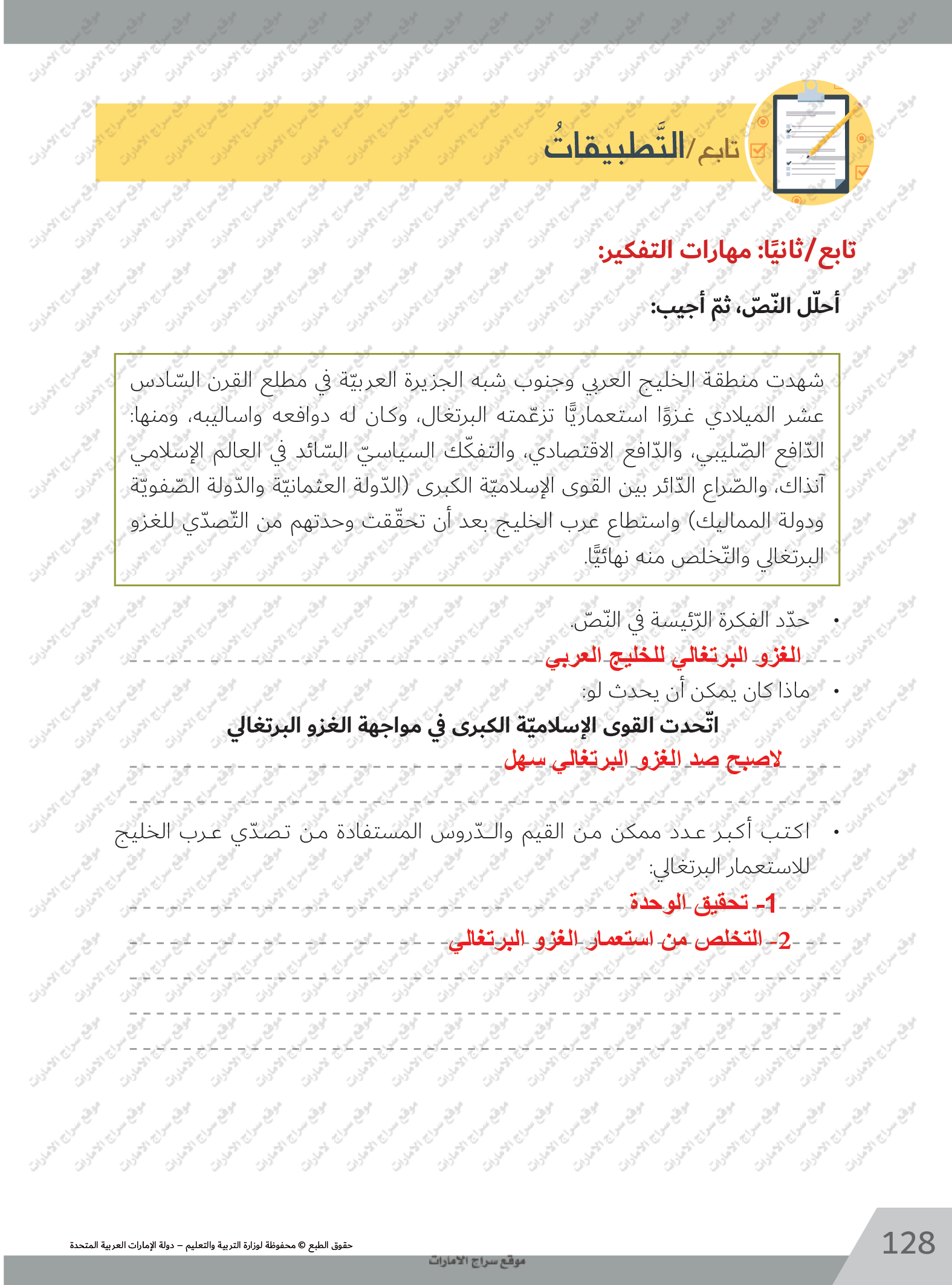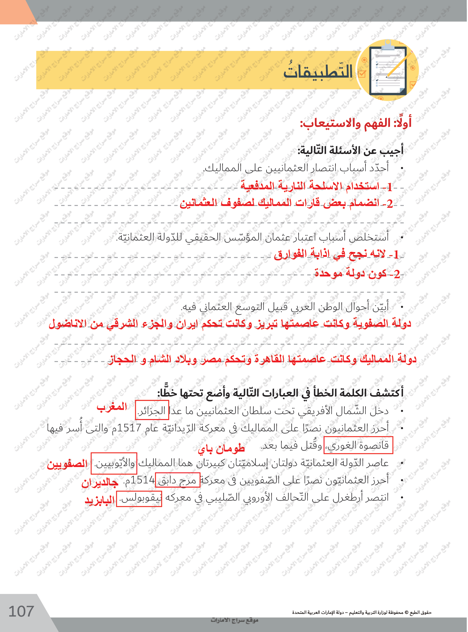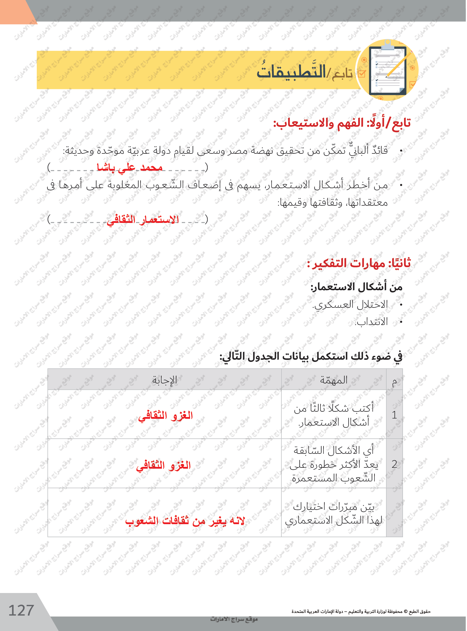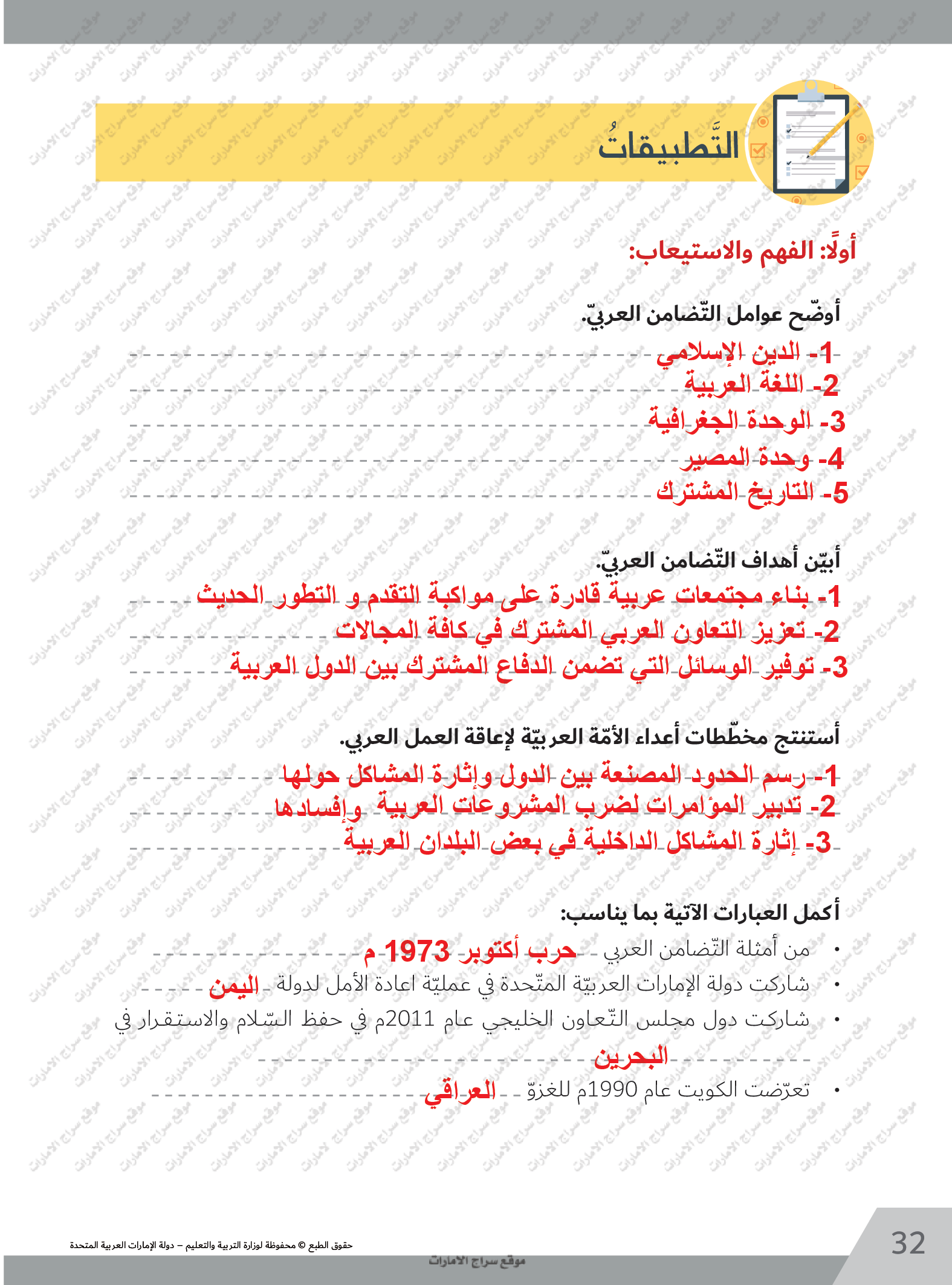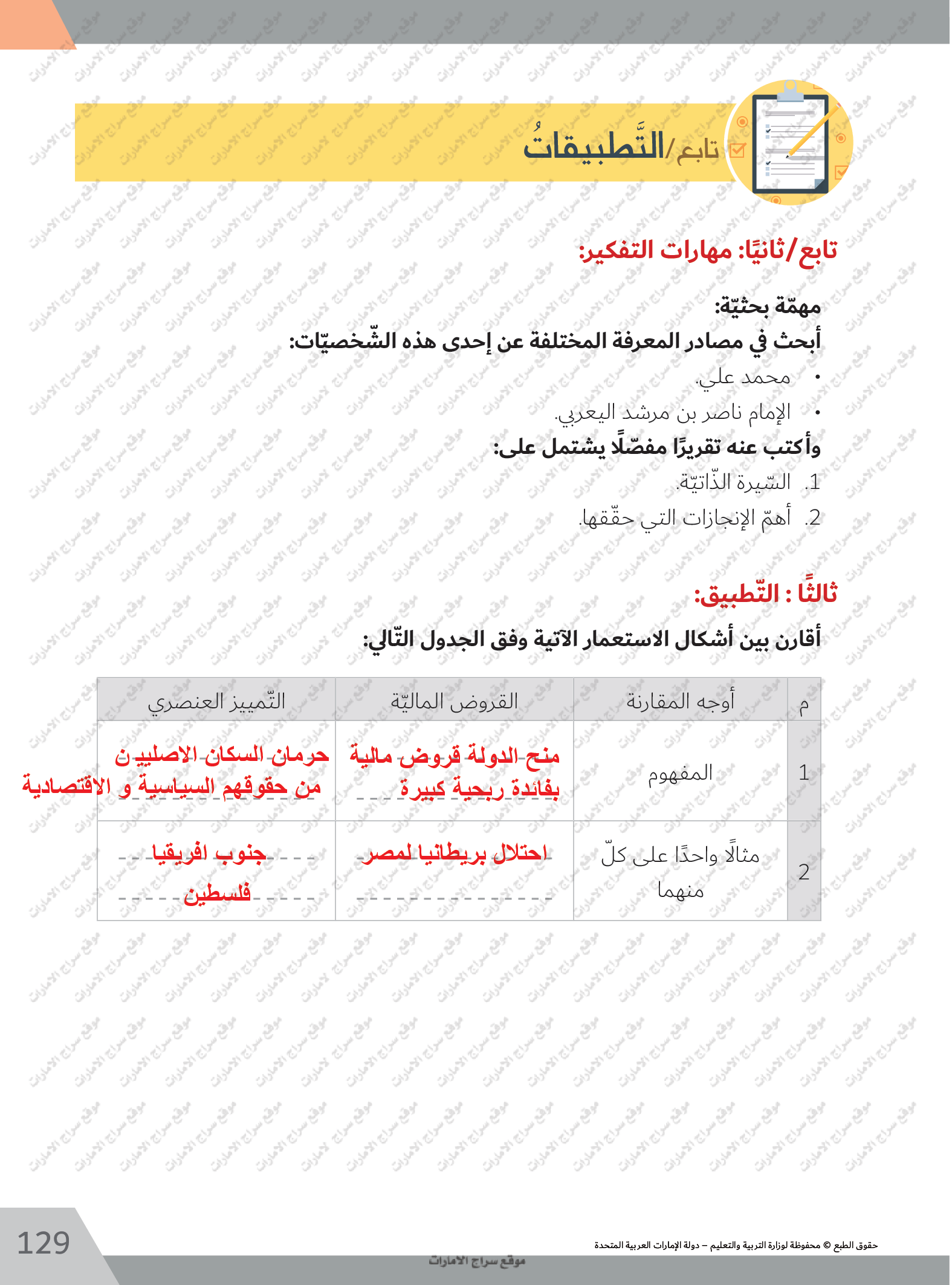 الوَحْدَةُ الثّالثةُِ (تاريخُ الوطنِِ العربيِّ الحديثُ والمعاصرُ)
