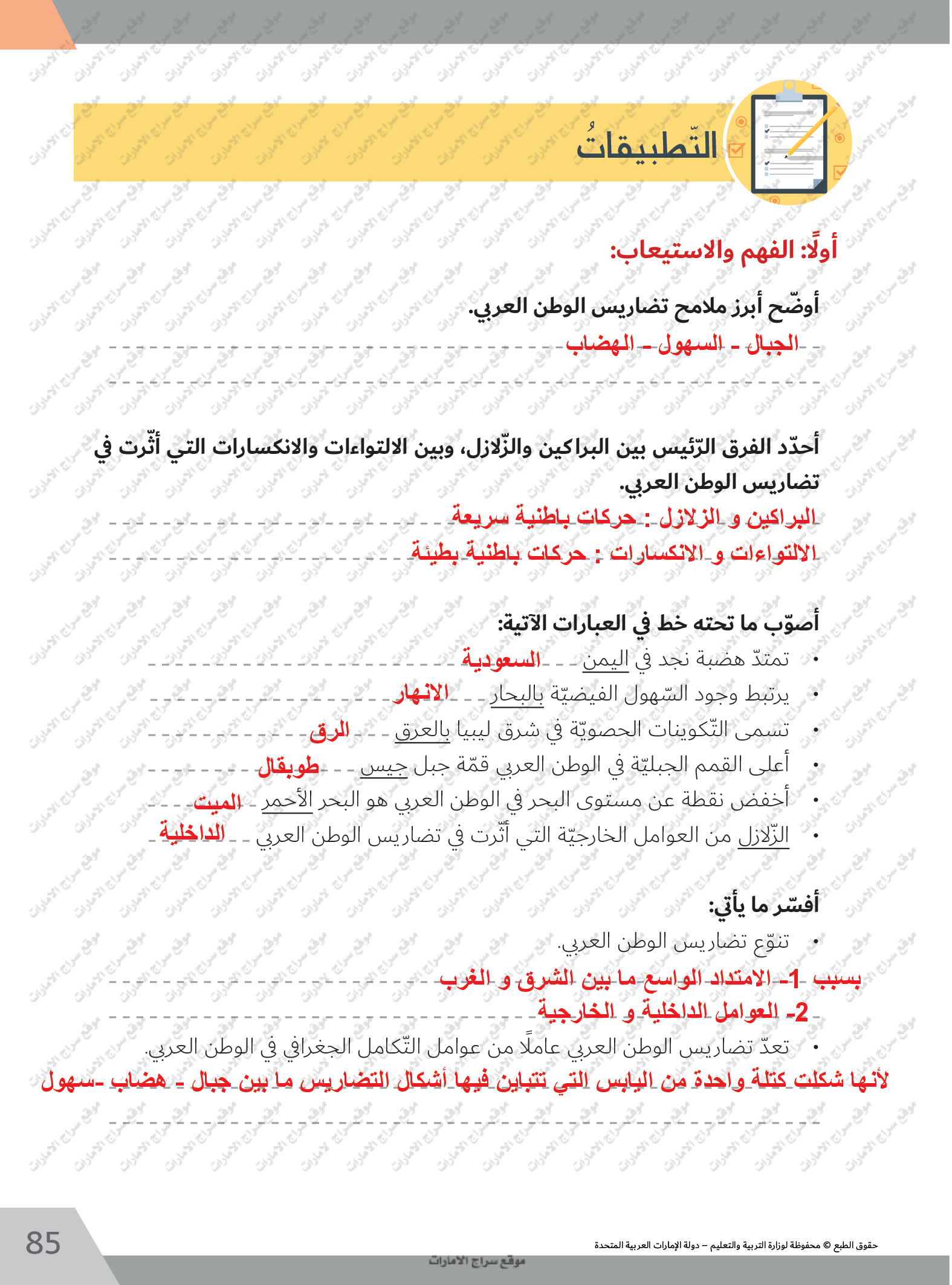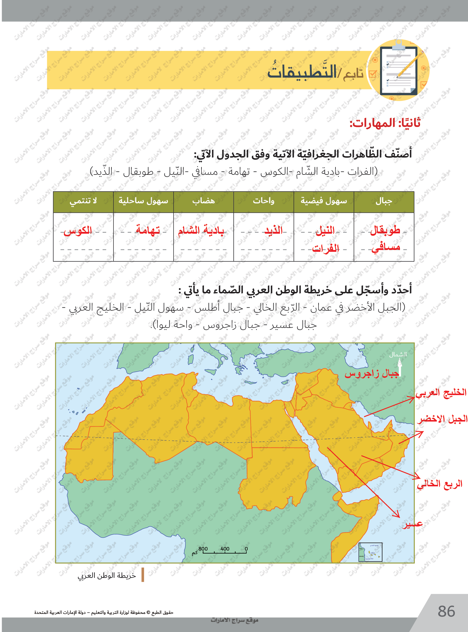 الوَحْدَةُ الثّانيةُ (الملامحُ الطّبيعيّةُ للوطنِ العربيِّ)