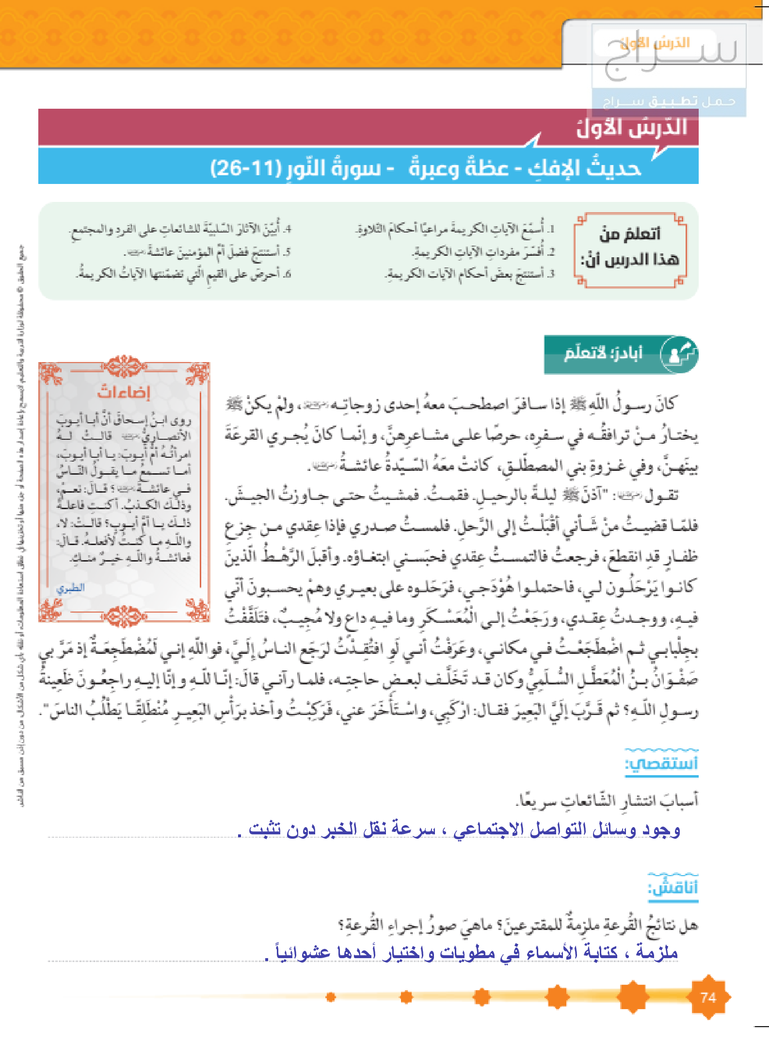 حديث الإفك - عظة و عبرة ( سورة النور 11 - 26 )