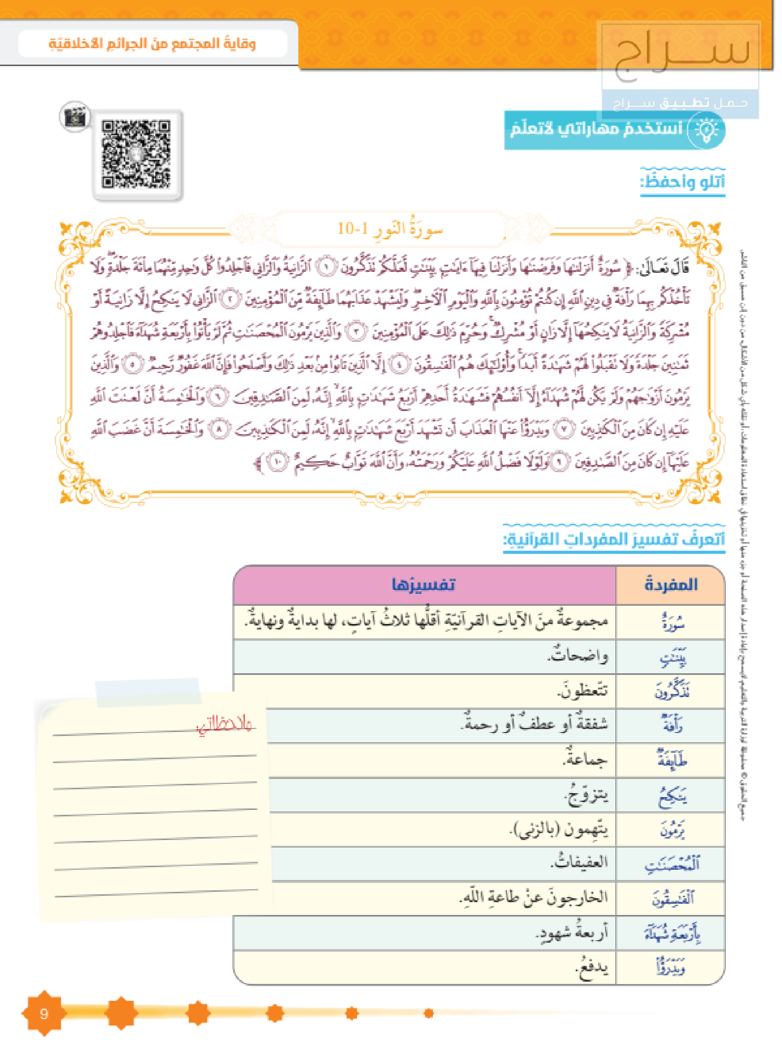 وقاية المجتمع من الجرائم الأخلاقية ( سورة النور 1 - 10 )