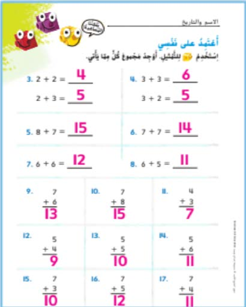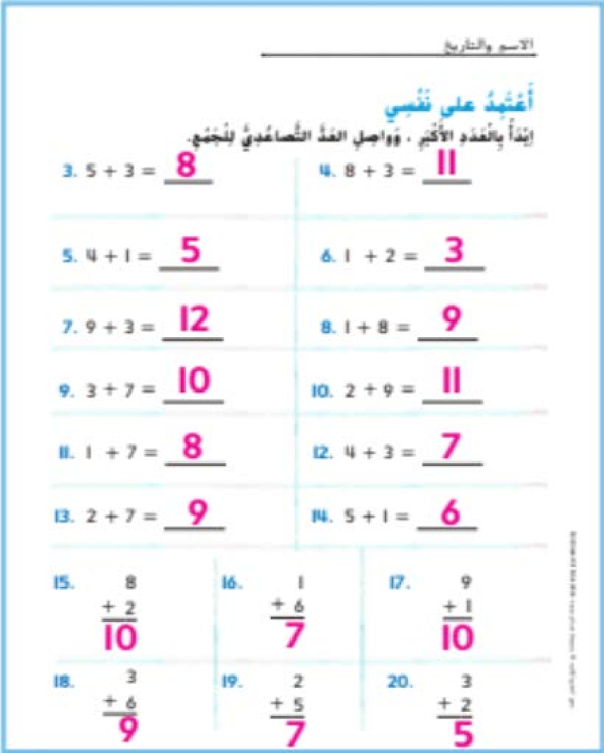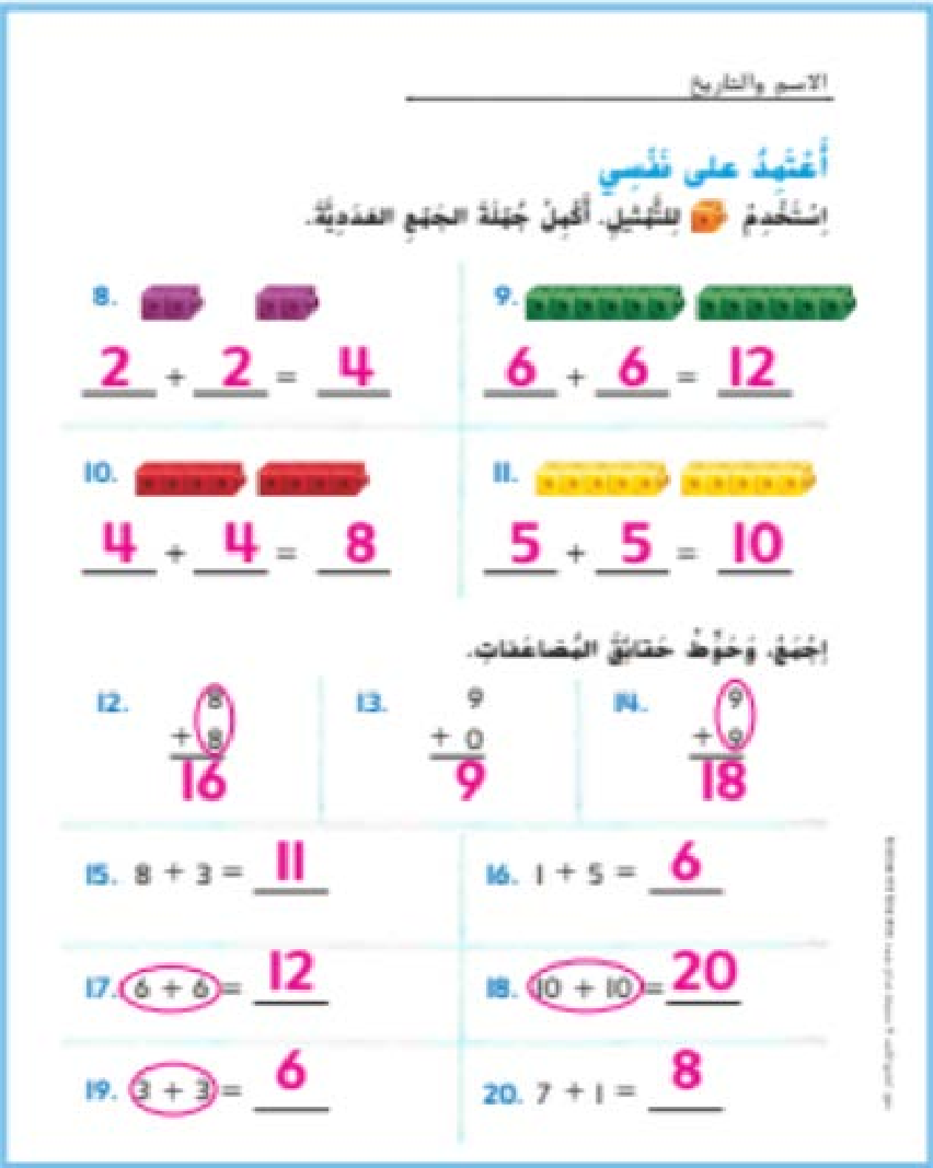الوحدة 3 استراتجيات الجمع حتى العدد 20