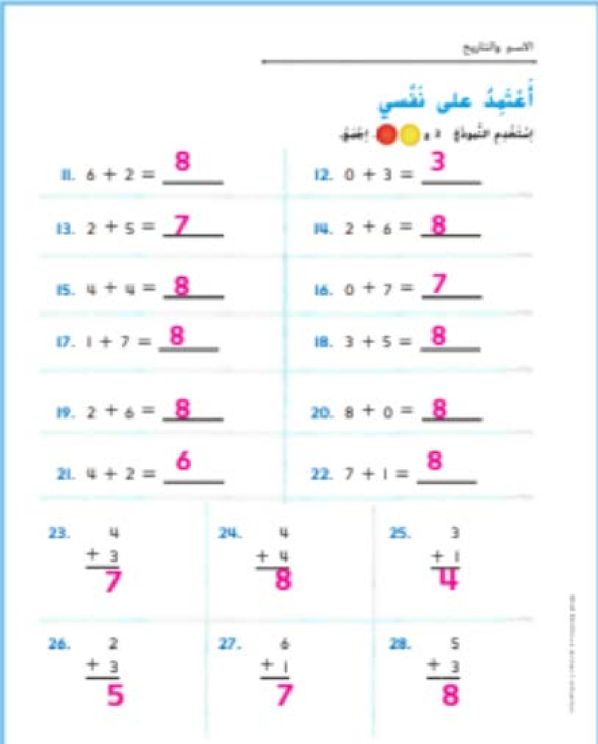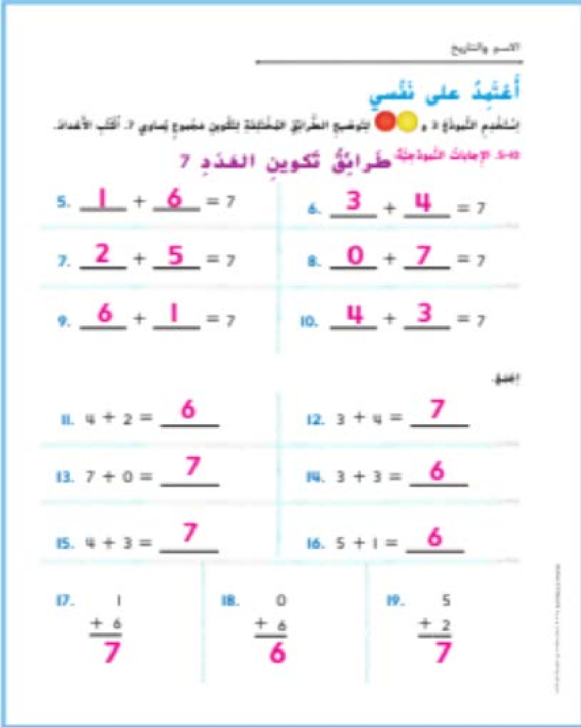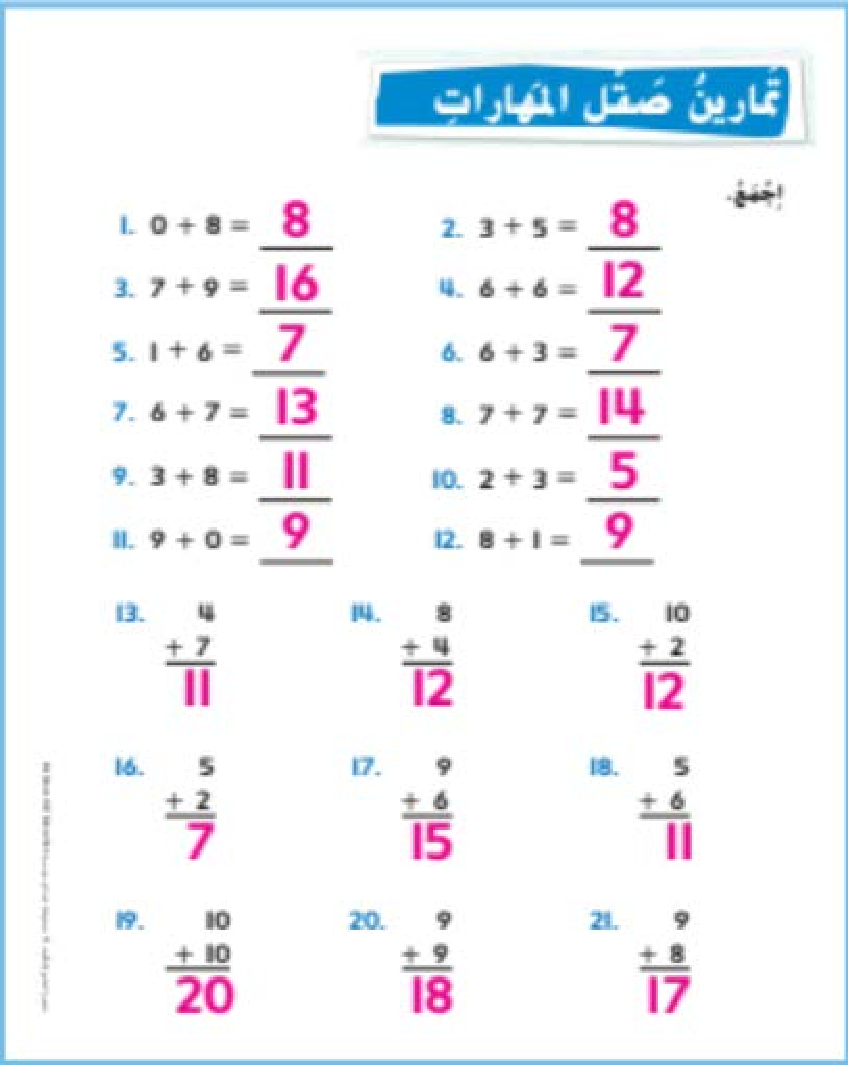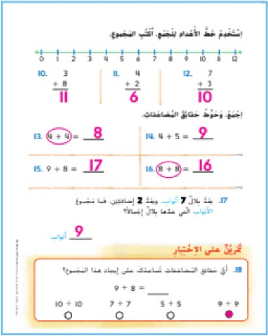 الوحدة 3 استراتجيات الجمع حتى العدد 20
