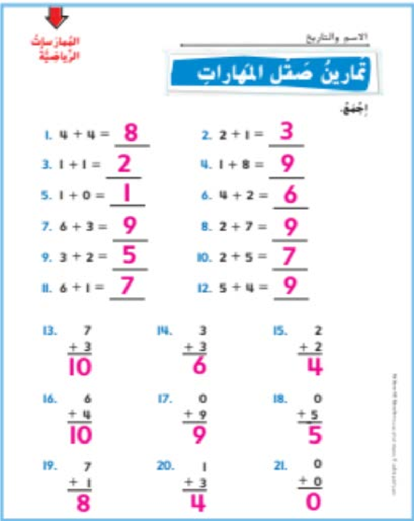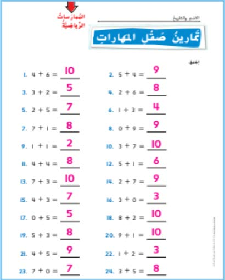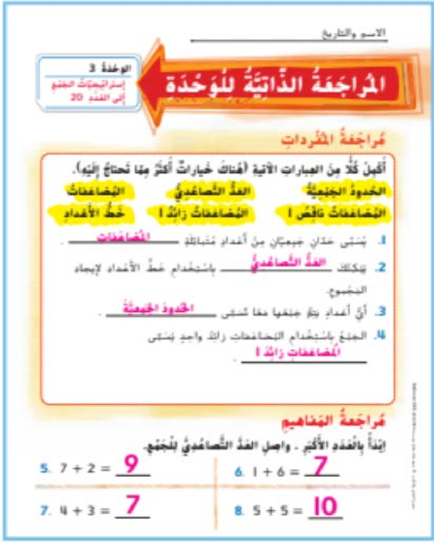 الوحدة A قراءة وكتابة الاعداد حتى 20