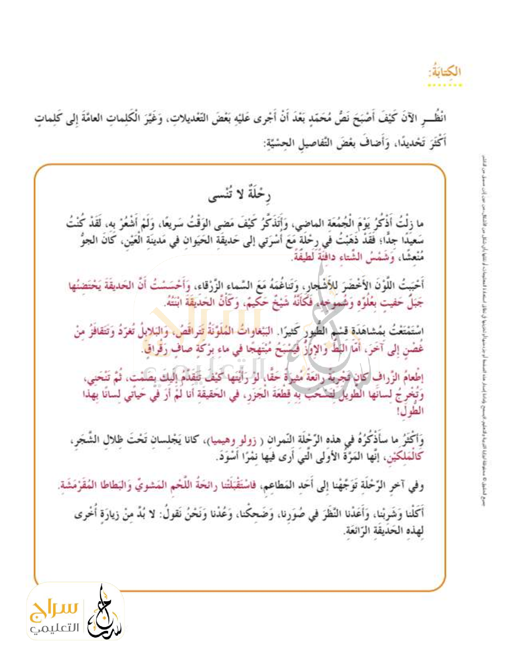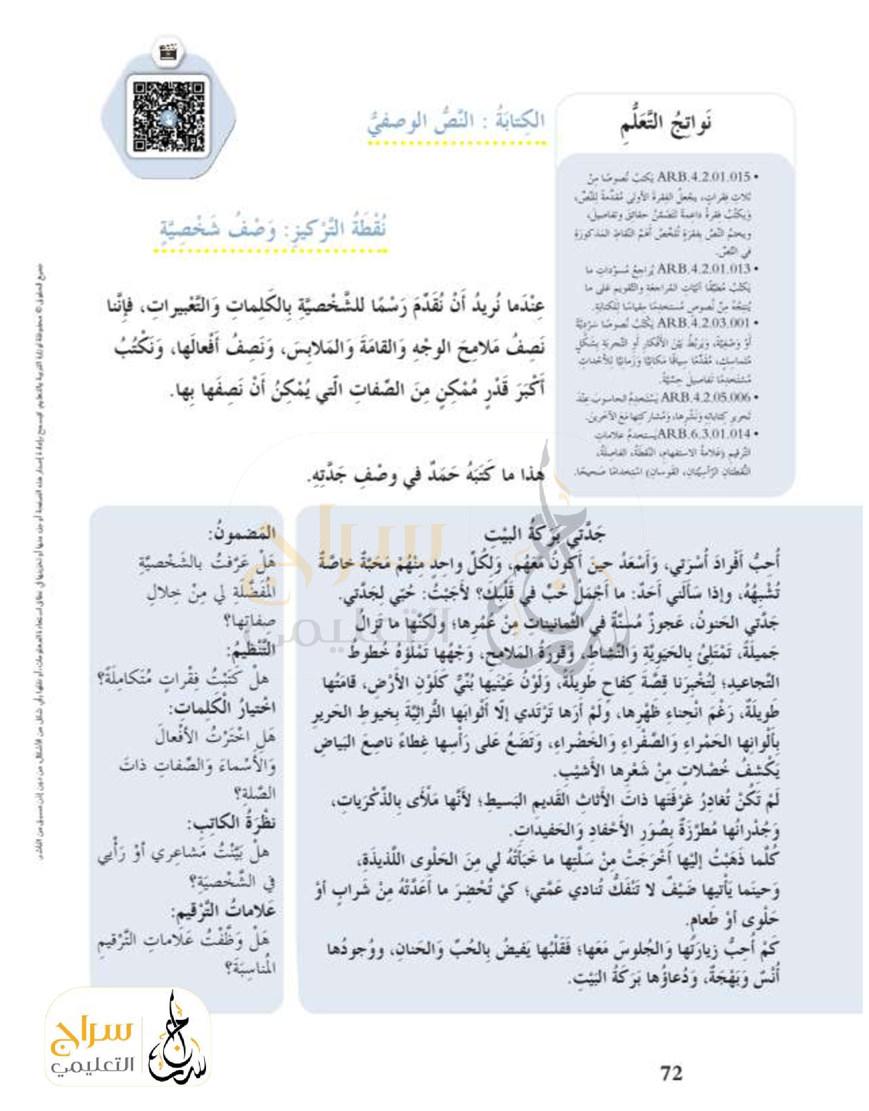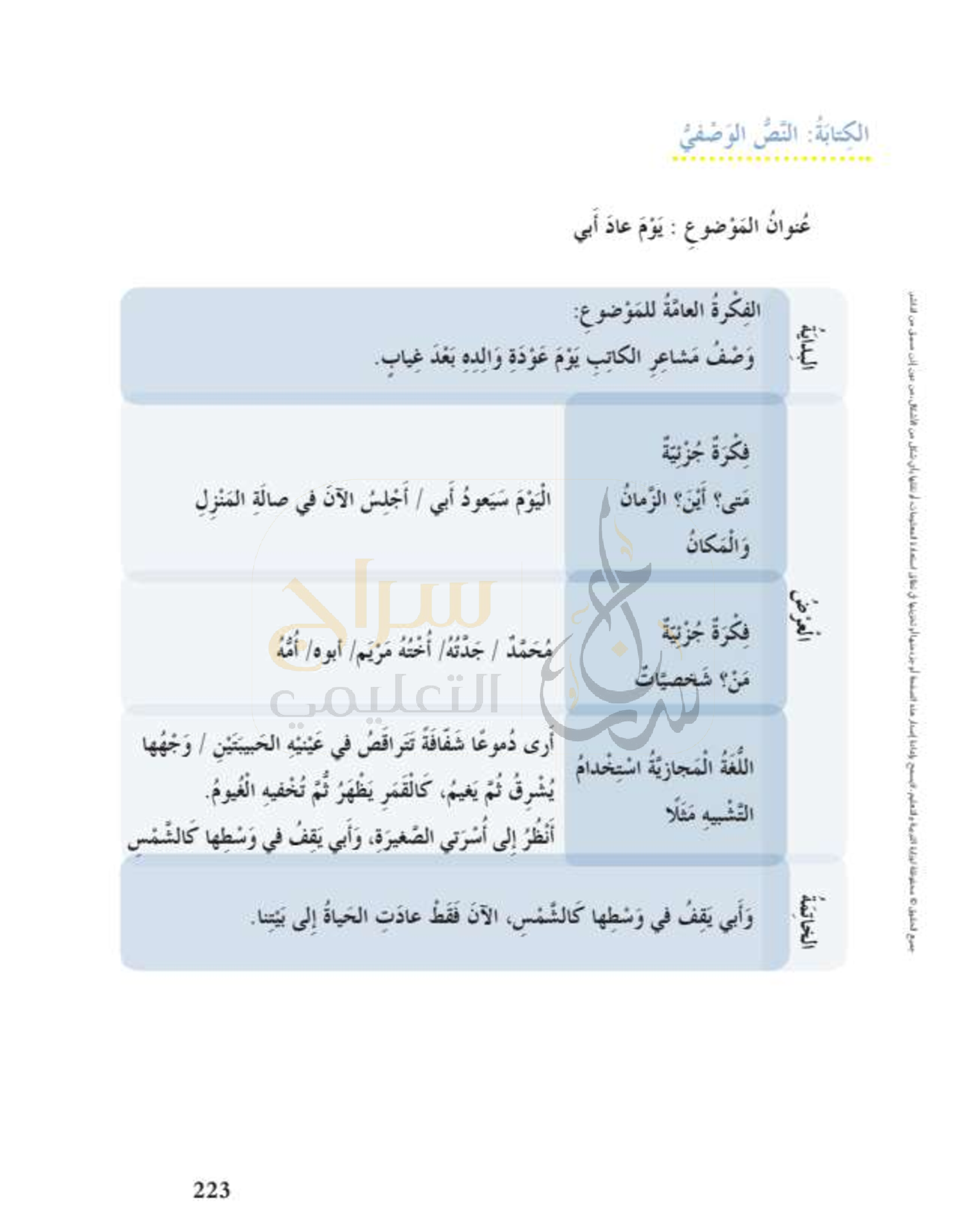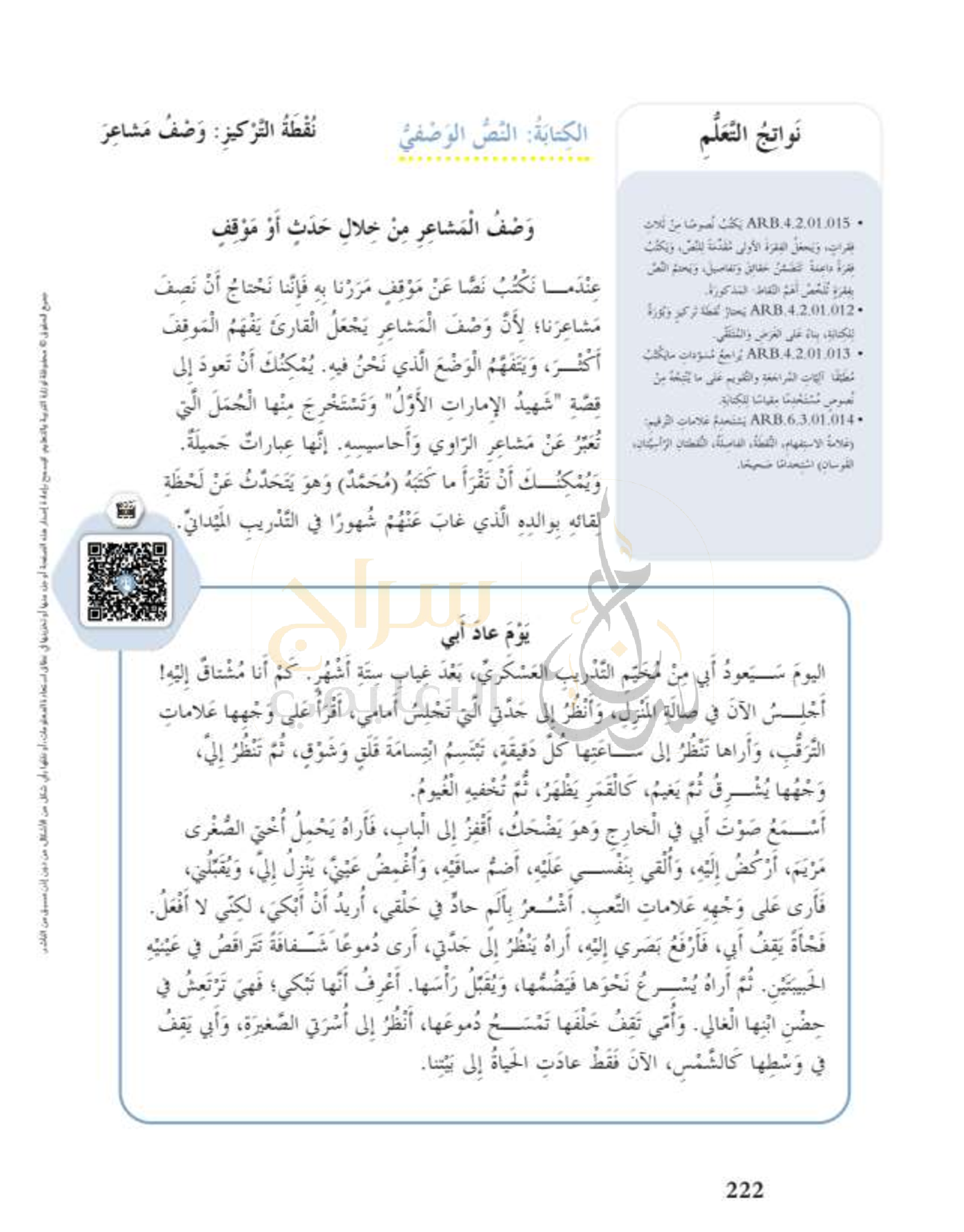 الكتابة النص الوصفي وصف المشاعر من خلال حدث او موقف