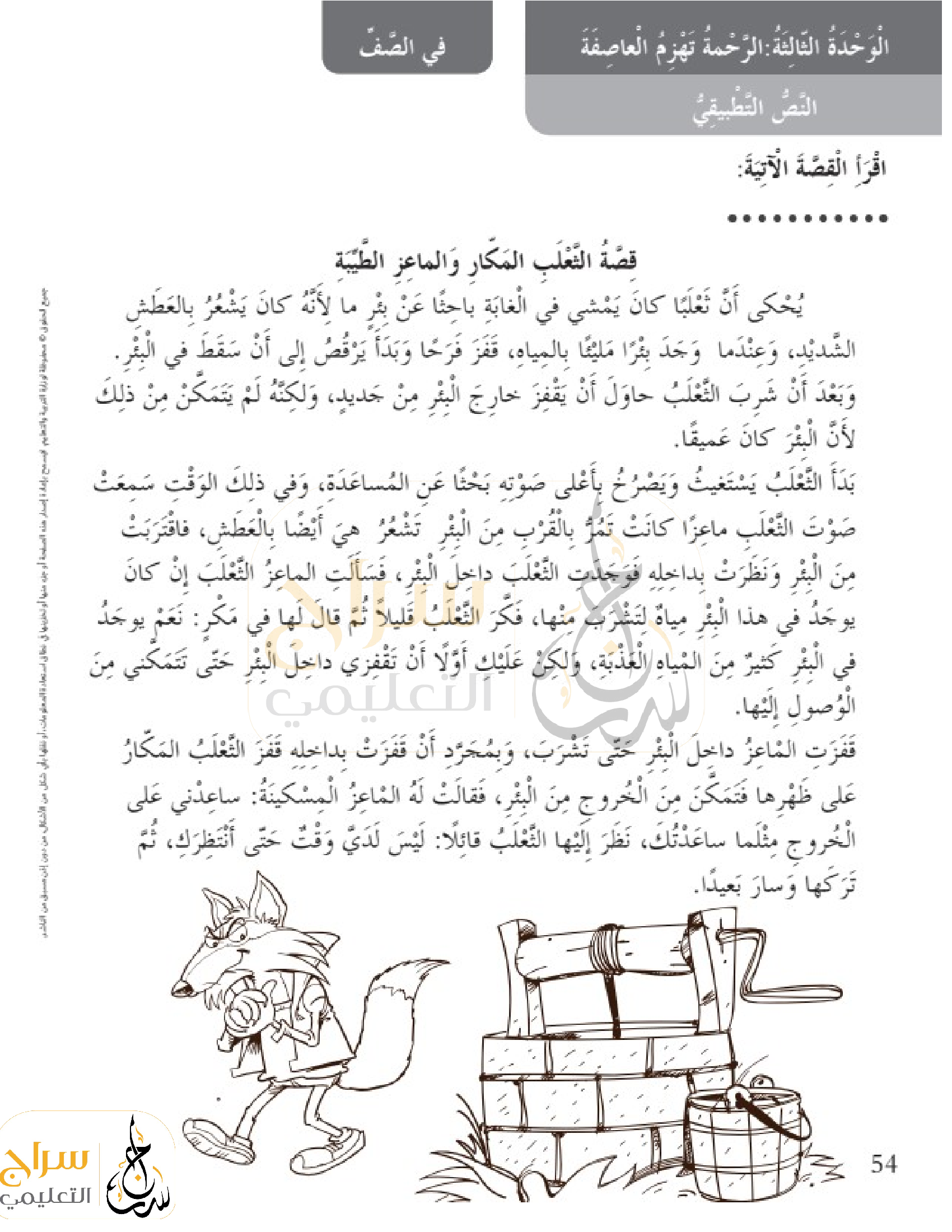 النص التطبيقي قصة الثعلب المكاؤ والماعز الطيبة