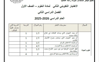 اختبار علوم مع الحل الصف الأول الفصل الثاني