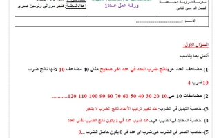 اوراق عمل وحلول دروس وحدة الضرب والقسمة رياضيات ثالث