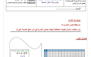 حل ورقة عمل الضرب والقسمة على 9 الرياضيات المتكاملة الصف الثالث الفصل الثاني