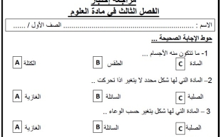 اختبار علوم الصف الأول الفصل الثالث - نموذج 2