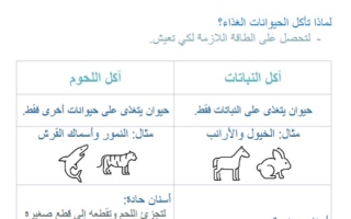 ملخص درس كيف تأكل الحيوانات الغذاء العلوم المتكاملة الصف الأول