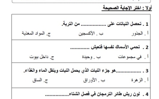 اختبارات تدريبية وحدة النباتات العلوم الصف الثاني