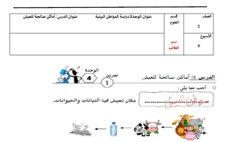 ملخص وأوراق عمل وحدة المواطن البيئية علوم الصف الثاني