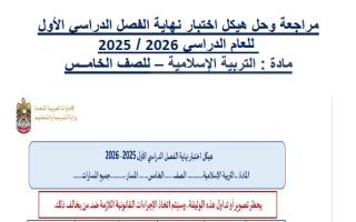 هيكل امتحان التربية الإسلامية الصف الخامس الفصل الدراسي الأول 2025-2026