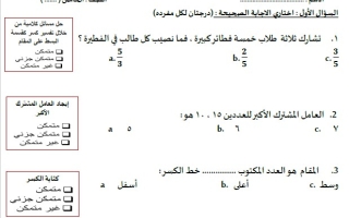 اختبار رياضيات مع الحل الصف الخامس الفصل الثاني - نموذج 1