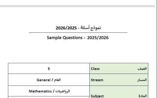 مراجعة الرياضيات للصف الخامس حسب الهيكل المعتمد للصف الخامس